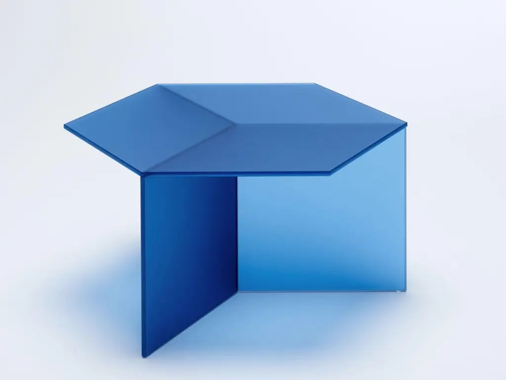 Satin glass "Isom Square" coffee table - Sebastian SchererDimensions: 80 x 69 x 40 cmMaterials: Solid colored glassDifferent colors and sizes are availableThe Isom tables play with a fascinating optical illusion. The hexagonal glass panel is UV glued with three vertical foot elements whose edges, viewed from a certain angle, convey the perfect isometric drawing of a cube. A special detail are the CNC-ground double mitres and the seamless bonding of the foot elements. The different sizes and variants can be combined very well. The glass tables are available in four colours, each in clear glass and satined.The NEO/CRAFT label was founded by the Berlin-based designer Sebastian Scherer after he won the Lexus Design Award 2014 for his Iris lamp (2013). The debut collection, which consisted of ten products, was first presented at the imm cologne in January 2015 in what Wallpaper Magazine described as “one of the most impressive debuts in 2015.” Exhibitions at trade fairs in Milan and London followed this same year. Since then, Sebastian Scherer has worked as a designer and creative director in equal measure. The collection consists of his designs, but these can also undergo further development in the future through the input of other designers. The central element in his developmental process is the continual search for new creative possibilities with classical materials such as aluminum, steel, glass and wood.