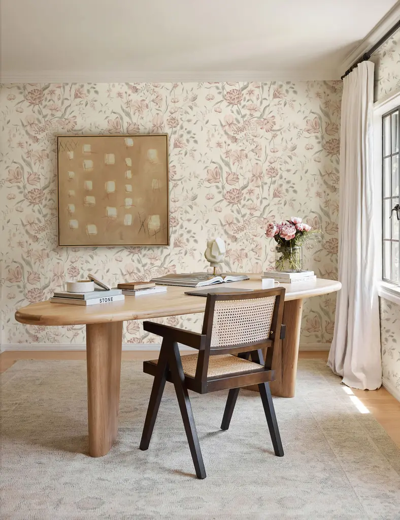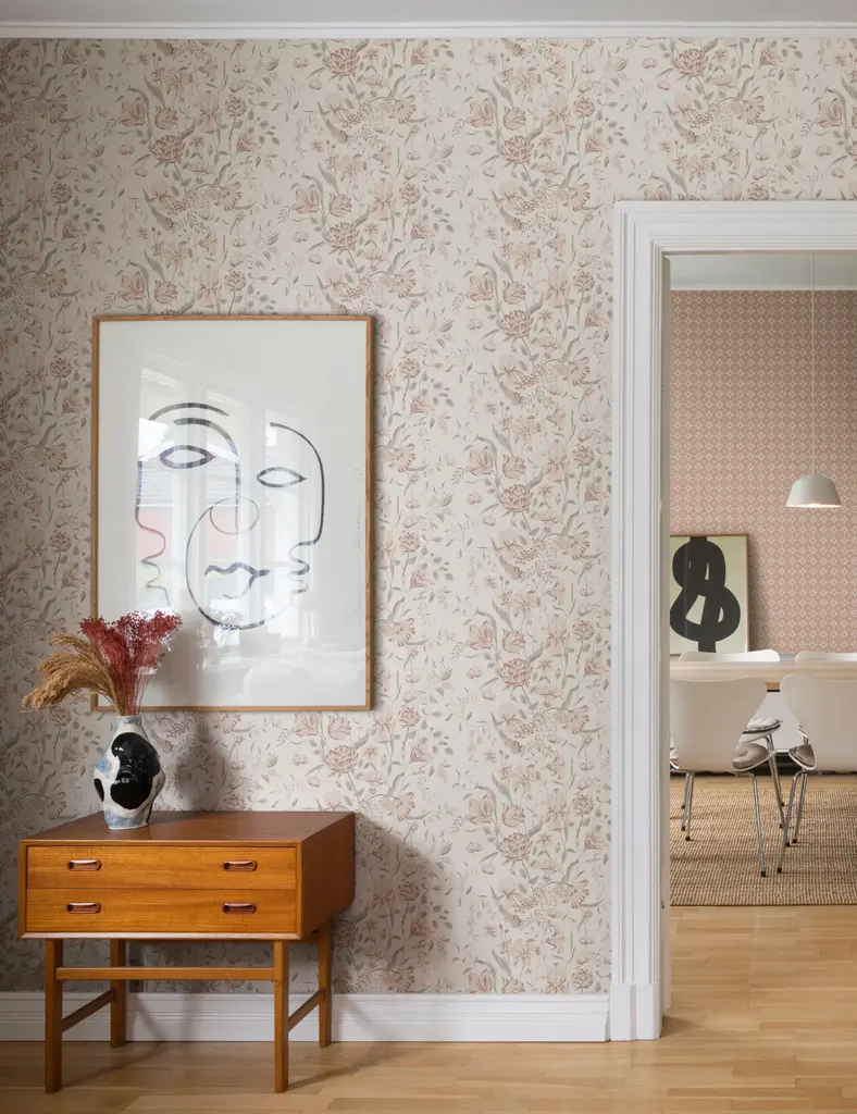 A delicate motif unfolds in this floral wallpaper inspired by the work of the Swedish design family Carl and Karin Larsson and their shared love for flowers. This versatile wallpaper can freshen up any space from living room to bath.
