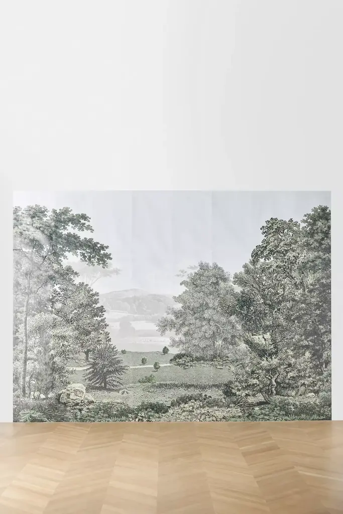 Escape to scenic hillsides with this graphite-hued peel-and-stick mural. Need help choosing the right wallpaper for your home? [Read our guide]( https://www.anthropologie.com/stories-home-wallpaper-guide) to transforming your walls - and your space. *To calculate the square footage of your space, we recommend combining the width of each wall, then multiplying this number by your ceiling height. Next, divide this number by the square footage of a single roll of wallpaper to determine the number of rolls required. Always round up to account for pattern repeat and variation.*