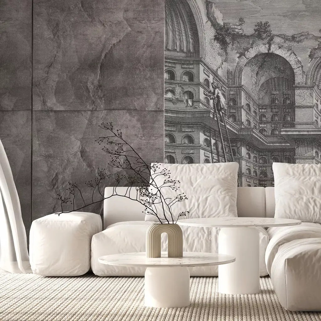 Piranesi 22 is the new collection by Officinarkitettura inspired by the works of Giovanni Battista Piranesi: 18th century architect, engraver and artist. His engravings emphasize the sumptuousness of Roman landscapes, especially architecture, which he enhances by representing a condition of isolation of the individual elements. For this collection, an eco-friendly and totally pvc-free wallpaper has been selected. Price per squared meter, please contact the Concierge for customization options.