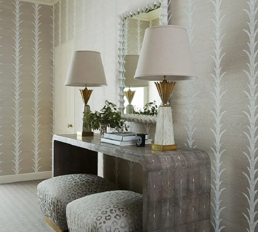 Schumacher Acanthus Stripe Sisal Wallpaper In Fog & Chalk
