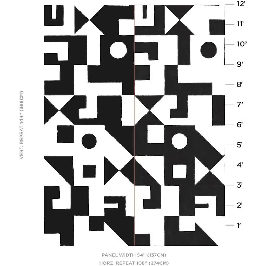 A stylish study of geometric shapes, this graphic pattern by Porter Teleo has a two-panel repeat. It's a striking, mural-like design that's ideal for large expanses.Panel Width: 54"Overall Dimensions: 108" W X 144" HSamples are available upon request.