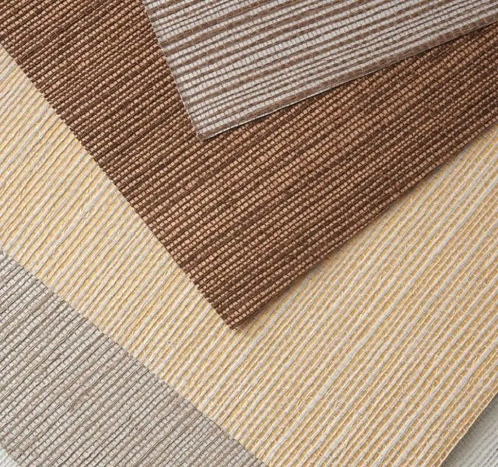 Natural hemp on a range of gently metallic grounds, then finished with a glamorous, subtle sheen; the perfect marriage of rustic and luxe.• Sold in 8 yard increments. • Match: Random