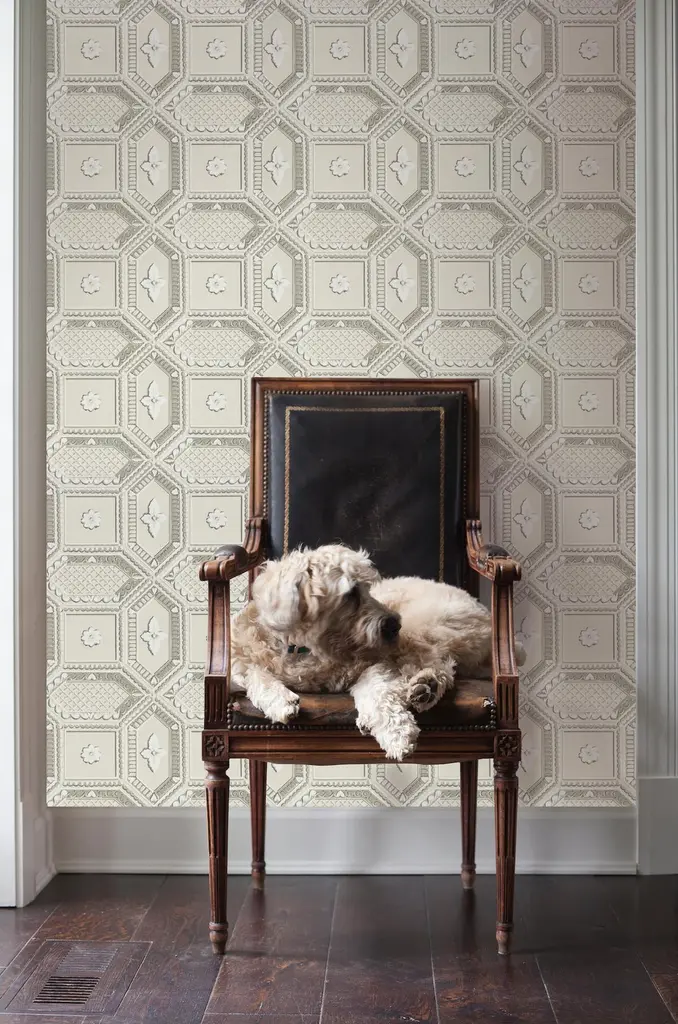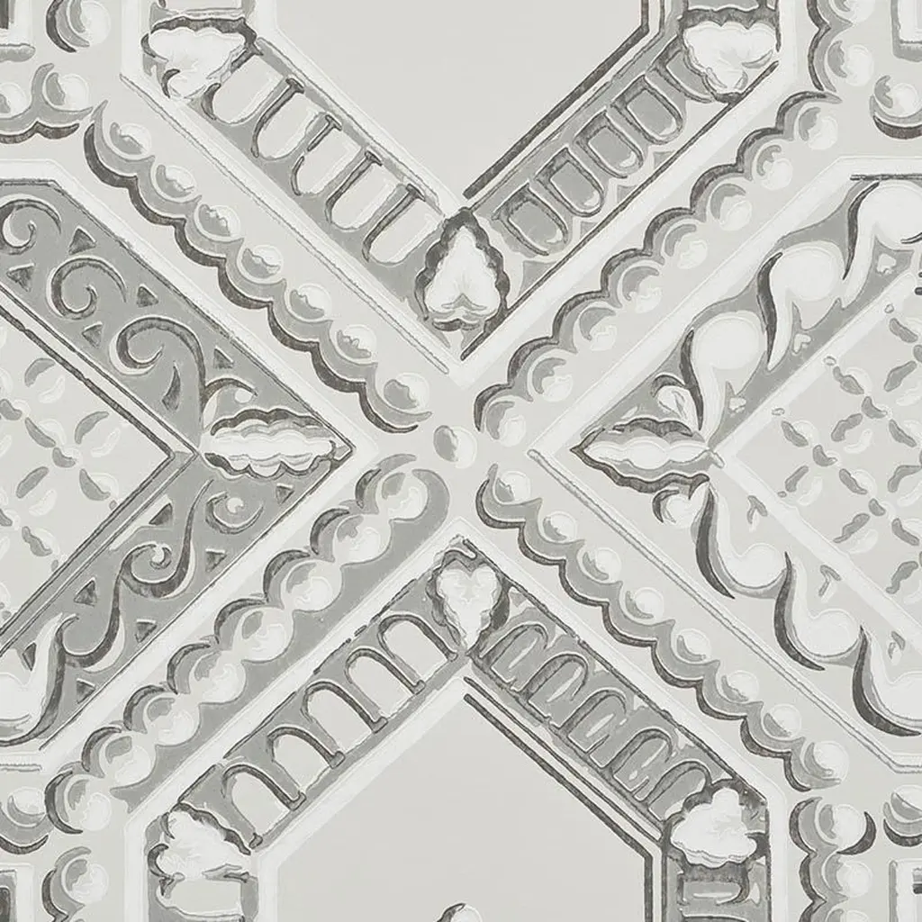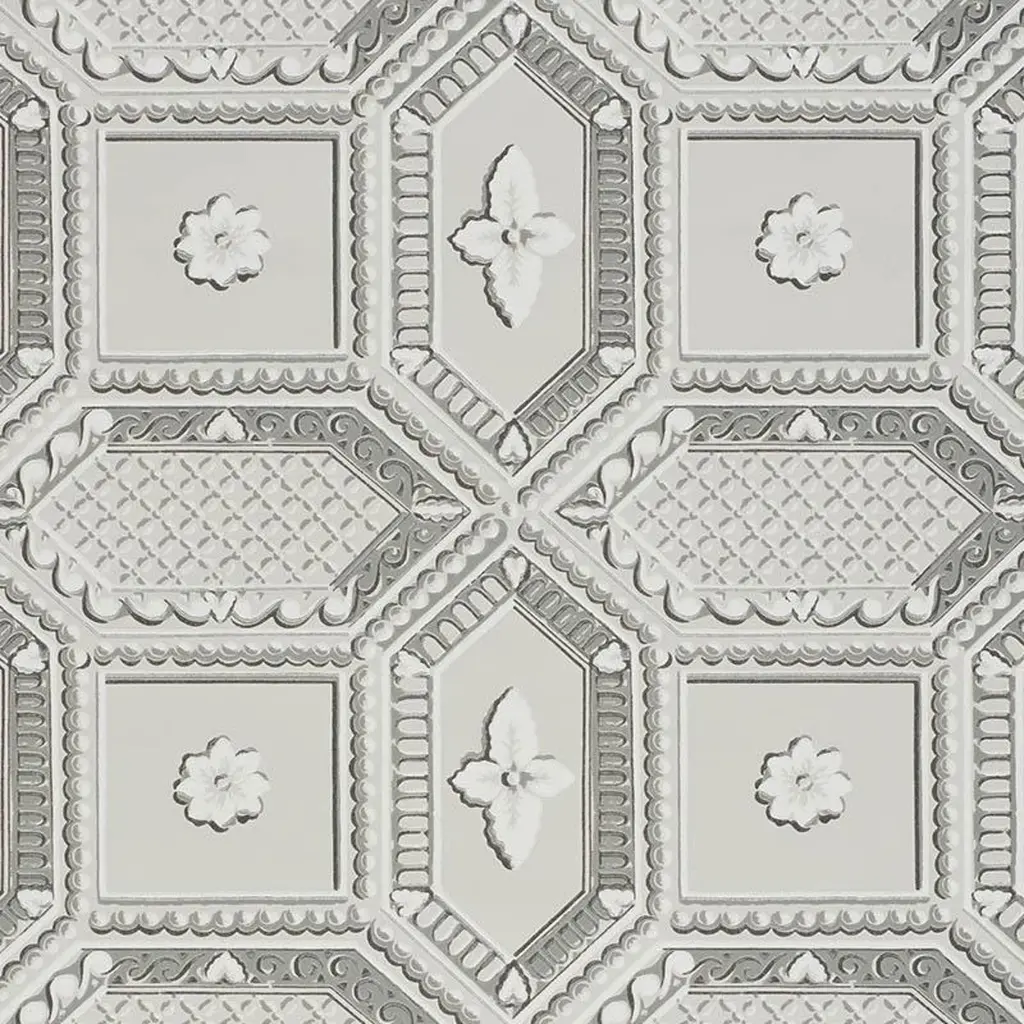 Applied to a ceiling, this Lacunaria calls to mind the richly coffered ceilings of McKim, Mead & White. Crisscrossing beams and stylized florettes add a delicate flourish.Since Schumacher was founded in 1889, our family-owned company has been synonymous with style, taste, and innovation. A passion for luxury and an unwavering commitment to beauty are woven into everything we do.Sold in 9 yard increments. Measurements:Length 324 inWidth 27 inTotal square footage 60.75 sq. ftMatch type: N/AHorizontal repeat 13.5 inVertical repeat 12.5 inCare: Wipe down with dry cloth.Country of Finish: USA.