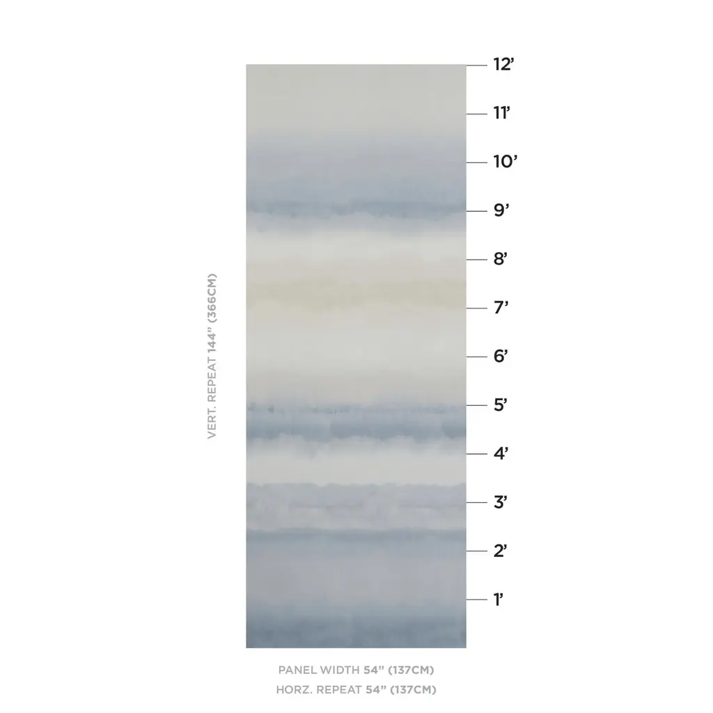 Capturing the look of artisanal processes like ikat or shibori, this 12-foot tall panel wallcovering has a soft, watercolor effect and alludes to a lush seascape or landscape.Panel Width: 54" Overall Dimensions: 54" W x 144" HSamples are available upon request.
