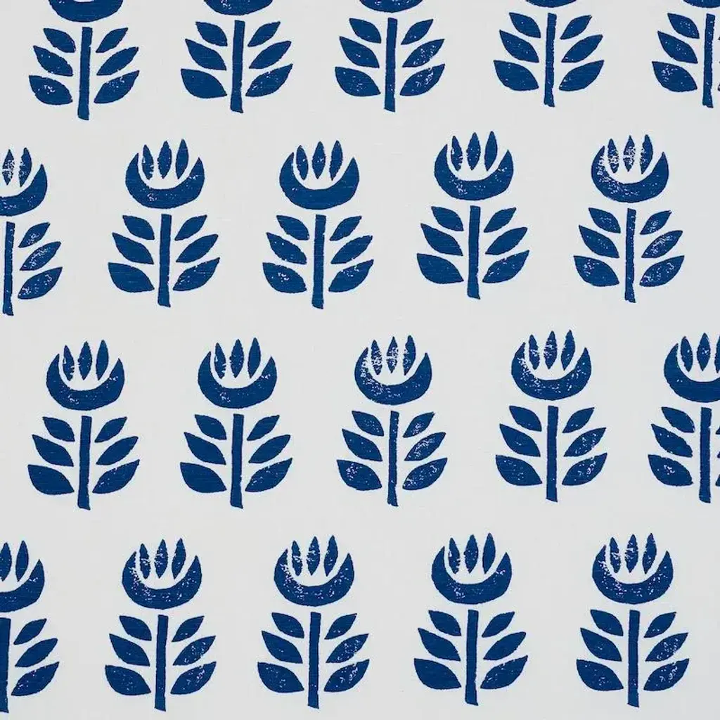 Screen printed on a linen ground, this simple, stylized tulip design has the perfectly imperfect look of a hand block print. It's a charming, graphic pattern that bridges traditional and modern. Also available as a wallpaper. Minimum order of 2 yards. Horizontal Repeat: 27" (69Cm) Vertical Repeat: 23 5/8" (60Cm) Match: Straight Content: 55% Linen, 45% Cotton Care Instructions: Dry Clean Recommended