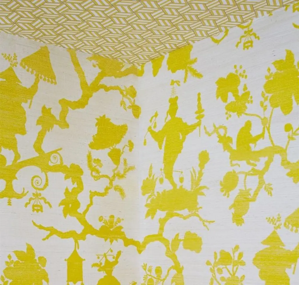 Classic chinoiserie motifs rethought as a modern silhouette pattern, this design brings whimsy and a fresh, graphic look to a room.• Sold in 8 yard increments. • Match: Half Drop