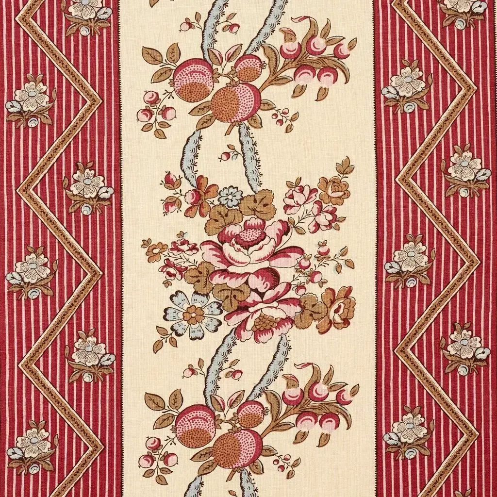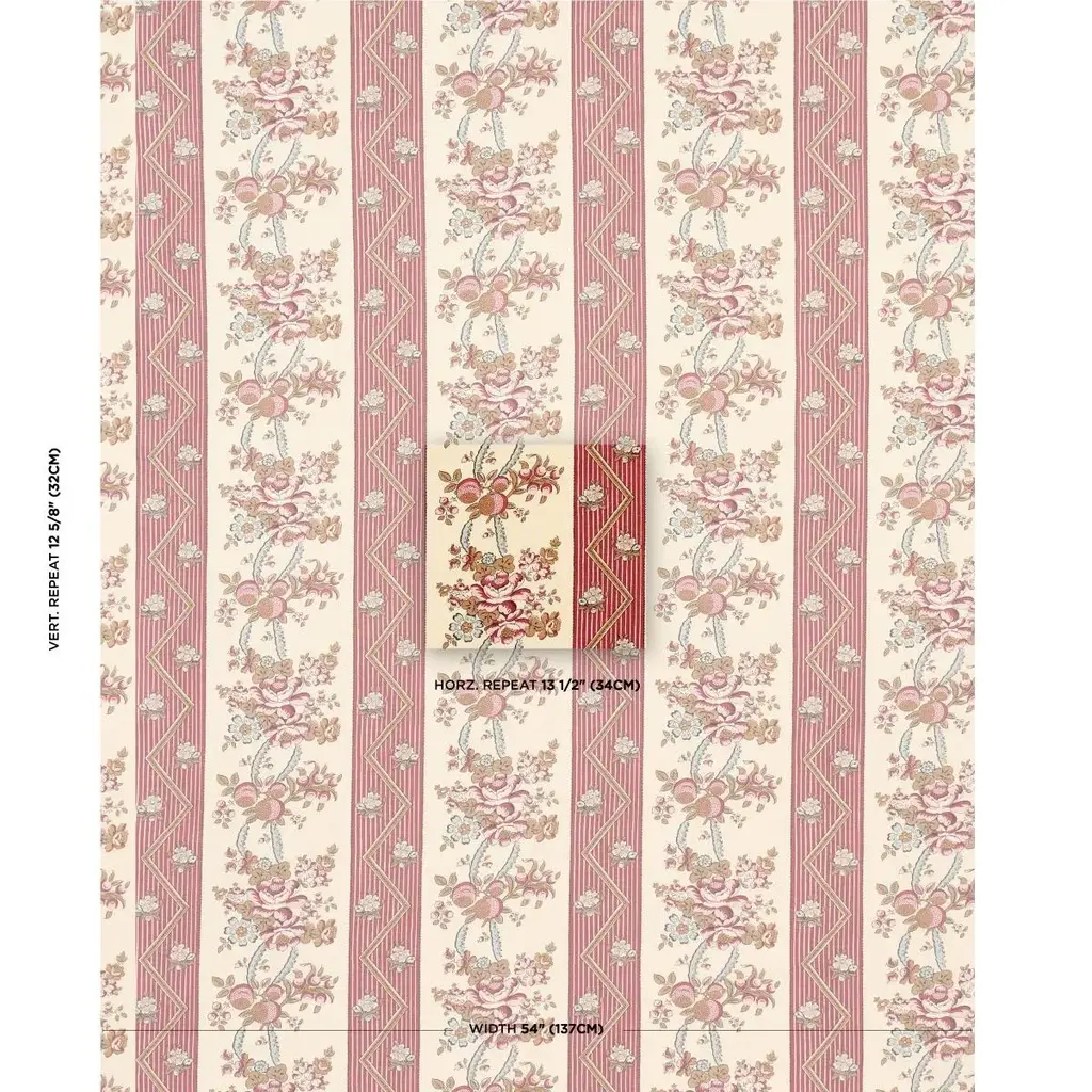 Schumacher Sylvain Floral Stripe Fabric In Rouge