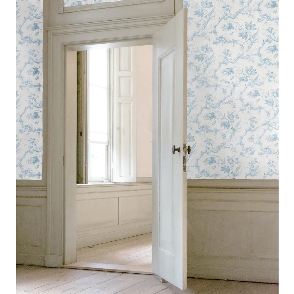 Schumacher Toile De Fleurs Wallpaper In Delft