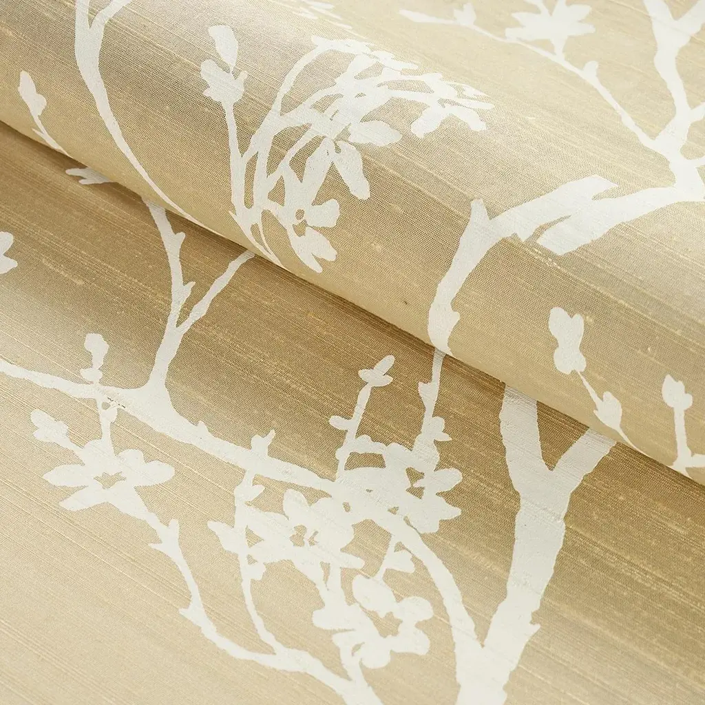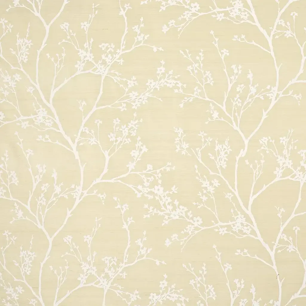 Twiggy Silk is a delicate yet graphic mid-scale pattern that brings the outdoors in, with beautiful flowering branches silhouetted against a solid ground. Pigment-printed on slubby Indian silk, this fabric has a subtle shimmer that makes it especially lovely for window treatments. Also available as a wallpaper. Sold as a 2-yard minimum. Horizontal Repeat: 53.5" (136CM) Match: STRAIGHT Vertical Repeat: 29.6" (75.3CM) Care Instructions: Dry Clean Recommended