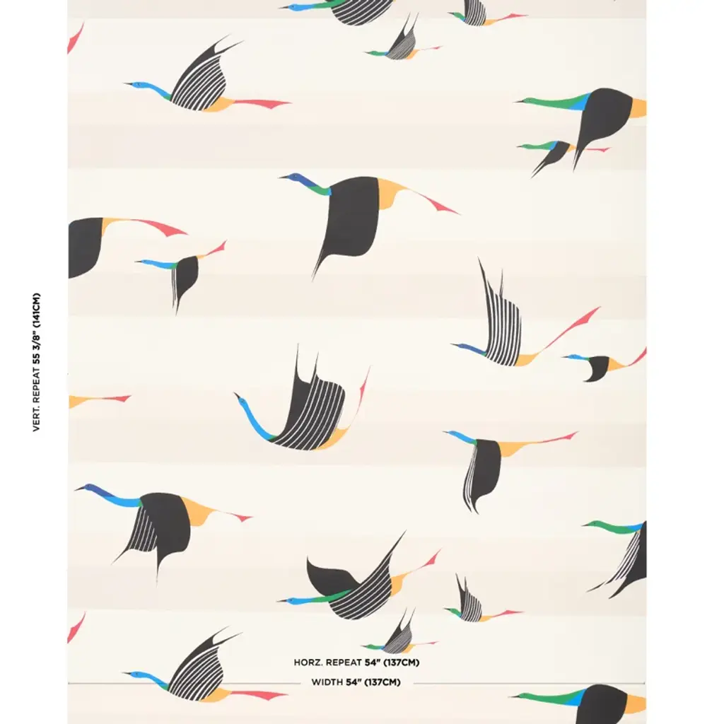 Based on art by Abel Macias, the canopy in multi-birds is a playful mid-scale design that derives it's fanciful floral and fauna from traditional Mexican embroidery. Printed on a fibrous ground, this wonderful wide-width wallpaper has a unique hand-painted look that creates a fabulous effect when wrapping an entire room or enlivening a focal wall. Also available as a fabric.
