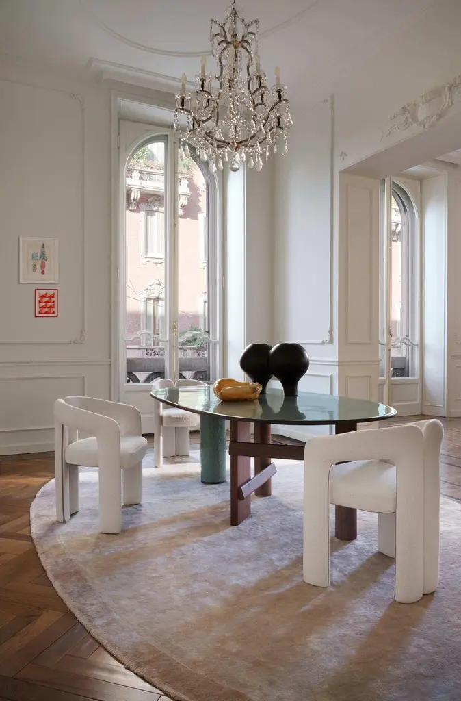 Sengu Dining Table designed by Patricia Urquiola.Manufactured by Cassina (Italy).LIGHT-HEARTED POETRYA design dining room table inspired by the ritual reconstruction of Japanese shrines, a contemporary piece that celebrates light-hearted cheer through dialog between different materials.Sengu Table is an almost monumental piece of furniture that celebrates conviviality through poetic dialogue, placing an accenton the union of different materials that together express greatvisual tactility The oval and round table is characterised by a solid wood structure with an oval leg which is connected by one or two crosspieces to the two cylindrical legs. The top is in the same wood essence as the structure - Canaletto walnut, natural oak or stained black oak - or combined with a cylindrical column of strong presence available in a selection of marbles and coloured ceramics.Solid wood, marble and ceramic define this piece signed by Patricia Urquiola. Thanks to the layering of materials, its pronounced visual physicality lends the table a sophisticated yet simple monumental feel. The oval and round table is characterised by a solid wood structure with an oval leg which is connected by one or two crosspieces to the two cylindrical legs. The top is in the same wood essence as the structure or combined with a cylindrical column of strong presence available in a selection of marbles and coloured ceramics.STRUCTUREWood structure with an oval leg which is connected by one or two crosspieces to the two cylindrical legs.TOPMarbleImportant information regarding images of products:Please note that some of the images show other colors and variations of the model, these images are only to present interior design proposals. The item that is selling is on the first image. Important information regarding colour(s) of products:Actual colours may vary. This is due to the fact that every computer monitor, laptop, tablet and phone screen has a different capability to display colours and that everyone sees these colours differently. We try to edit our photos to show all of our products as life-like as possible, but please understand the actual colour may vary slightly from your monitorAbout the designer:Patricia Urquiola was born in Oviedo (Spain) in 1961. Lives and works in Milan. She attended the University of Architecture at Madrid Polytechnic and Milan Polytechnic, where she graduated in 1989 with Achille Castiglioni. Assistant lecturer to Achille Castiglioni and Eugenio Bettinelli in Milan and Paris, responsible for the new product development office of DePadova, working with Vico Magistretti, head of Lissoni Associati’s design group. In 2001 she opened her own studio working on product design, architecture, and installations. Amongst her last projects of architecture. The museum of Jewel in Vicenza, Mandarin Oriental Hotel in Barcelona, das Stue Hotel in Berlin and the Spa of Four Seasons Hotel in Milan; showroom and installations for Gianvito Rossi, BMW, Cassina, Missoni, Moroso, Molteni, Officine Panerai, H&M, Santoni and the general concept of Pitti Immagine Firenze. She realize design products for the most important Italian and international companies, such as : Agape, Alessi, Axor-Hansgrohe, B&B Italia, Baccarat, Boffi, Budri, De Padova, Driade, Ferragamo, Flos, Gan, Georg Jensen, Glas Italia, Haworth, Kartell, Kettal, Kvadrat, Listone Giordano, Louis Vuitton, Molteni, Moroso, Mutina, Rosenthal and Verywood.Some of her products are exposed in various Museums and collections, such as MoMA in New York, Les arts decoratifs in Paris, the Museum of Design in Zurich, Vitra Design Museum in Basel, Victorian&Albert Museum in London, Stedelijk in Amsterdam and Triennale Museum in Milan.She has won several international prices and awards. Amongst others the Medalla de Oro al Mérito en las Bellas Artes (Gold Medal of fine arts) awarded by the Spanish Government; Order of Isabella the Catholic, awarded by His Majesty The King of Spain Juan Carlos I; “Designer of the decade” for two German magazines, Home and Häuser, “Designer of the Year” for Wallpaper, Ad Spain, Elle Decor International and Architektur und Wohnen Magazine. She is Ambassador of Expo Milano 2015. September 2015 Patricia Urquiola nominated Art Director of Cassina.15900About the manufacturer:In a continuing dialogue between past, present, and future, Cassina has created the I Maestri collection, revisiting furnishing designs by the twentieth century’s best-known architects, including Le Corbusier, Pierre Jeanneret, Charlotte Perriand, Charles Rennie Mackintosh, Gerrit Thomas Rietveld, Franco Albini, Frank Lloyd Wright and Marco Zanuso. While the designs and functional concepts have been precisely preserved, the models have been manufactured using evolved technology. This is also the company that has manufactured iconic pieces of contemporary design from the 50’s to the present day, ideated by some of the most important international designers. Today Cassina continues to look to the future of design with audacious, passionate curiosity and an open, holistic approach. It affirms its exclusive ability to furnish a home’s living and dining spaces completely and iconically with The Cassina Perspective: a concept, a philosophy, an informed, futuristic thought. A detailed, expansive horizon of combinations; when placed together, the products have an innovative soul and the modern icons create authentic, welcoming, personal atmospheres involved in a conversation dominated by a code of design excellence, formal sensitive awareness, solidity and cultural authority.