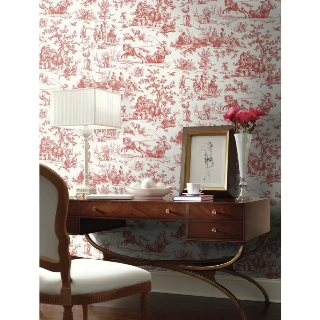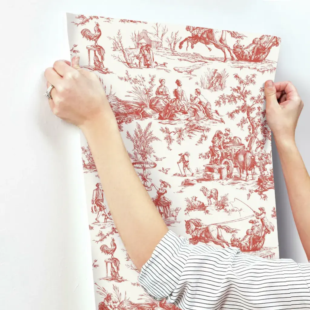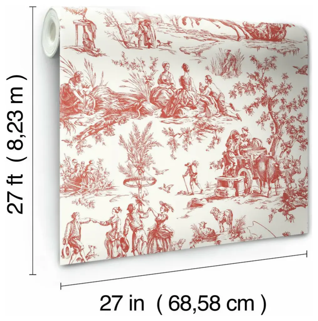 Timeless motifs combine with sophisticated color to create the playful, casual pattern mix of heritage and modern found in Grandmillennial. Manufactured on Sure Strip�, a unique high performance substrate, this ultra-easy removable wallpaper is guaranteed easy to install and easy to remove; simply use water to activate. The pastoral scenes of pattern Seasons Toile, which are taken from an archival document, are created in the classic French print style of toile de Jouy. Includes 1 roll - 27 in x 27 ft = 60.75 sq ft with a drop match and 25.25 in repeat.