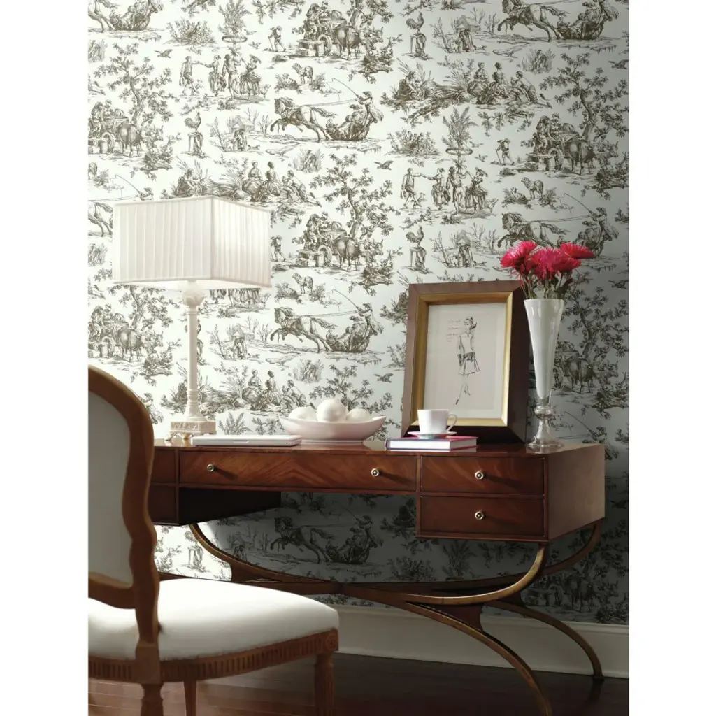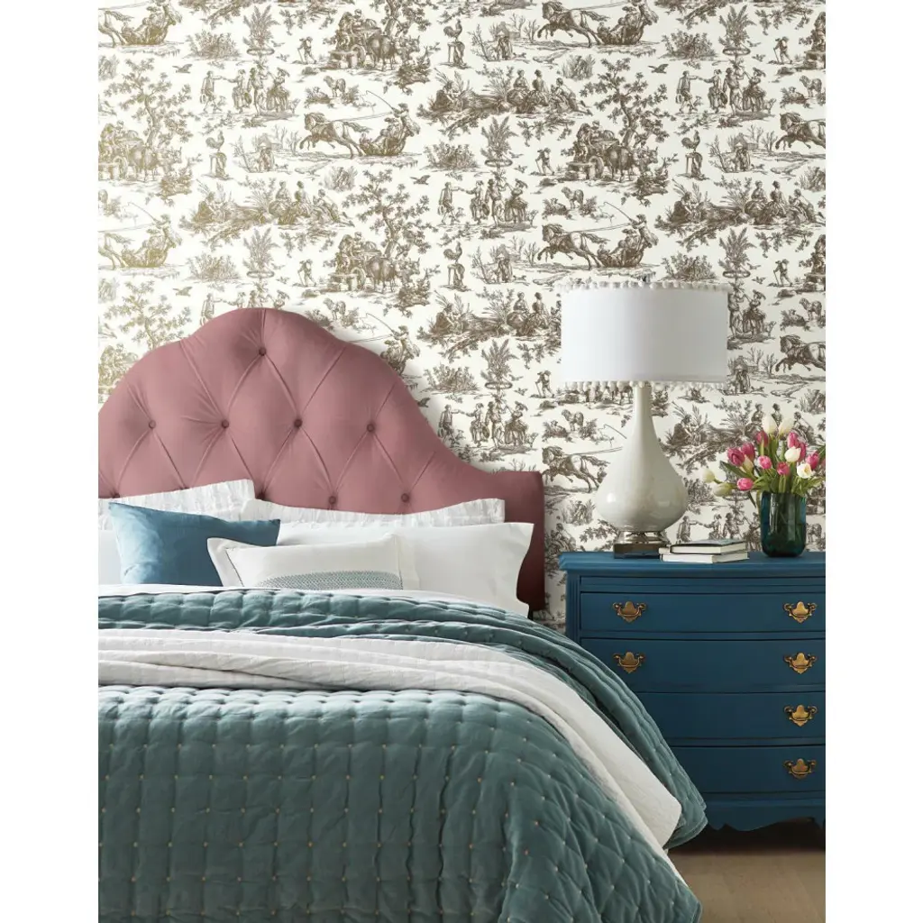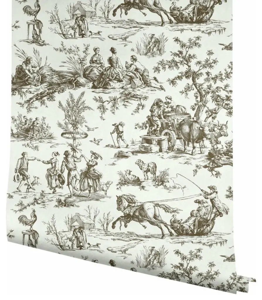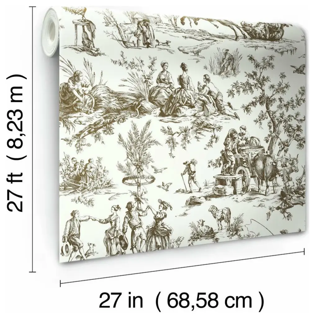Timeless motifs combine with sophisticated color to create the playful, casual pattern mix of heritage and modern found in Grandmillennial. Manufactured on Sure Strip�, a unique high performance substrate, this ultra-easy removable wallpaper is guaranteed easy to install and easy to remove; simply use water to activate. The pastoral scenes of pattern Seasons Toile, which are taken from an archival document, are created in the classic French print style of toile de Jouy. Includes 1 roll - 27 in x 27 ft = 60.75 sq ft with a drop match and 25.25 in repeat.