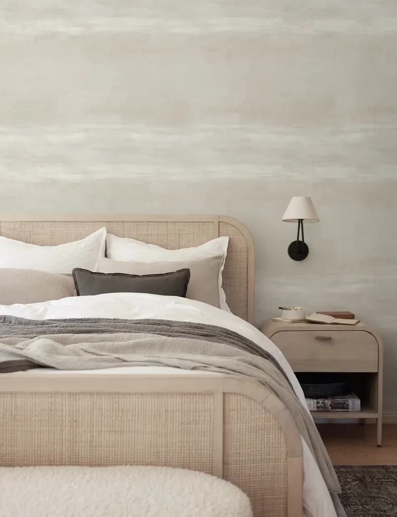 Soft, tonal bands bring a grounding balance to this abstract wallpaper design. In a tranquil powder room or modern living space, this wallpaper can offer a calming treatment with versatile style appeal.