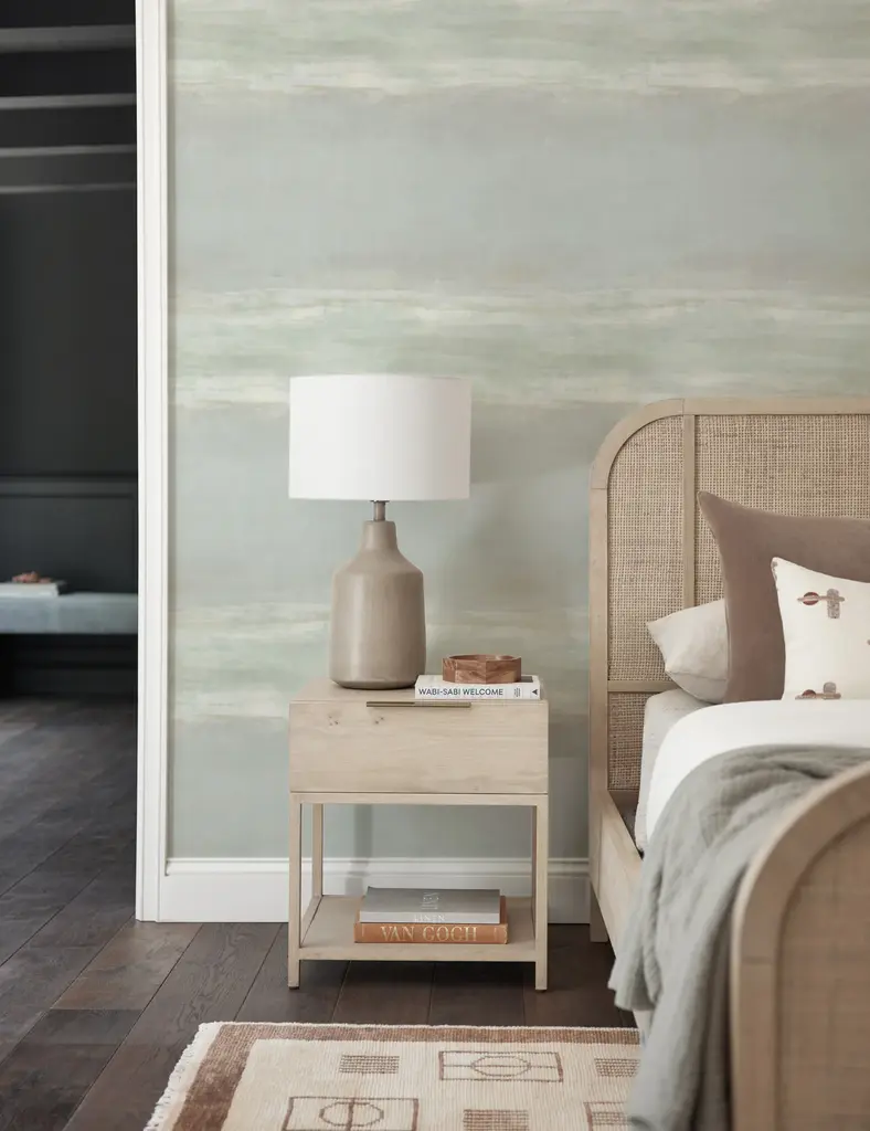 Soft, tonal bands bring a grounding balance to this abstract wallpaper design. In a tranquil powder room or modern living space, this wallpaper can offer a calming treatment with versatile style appeal.