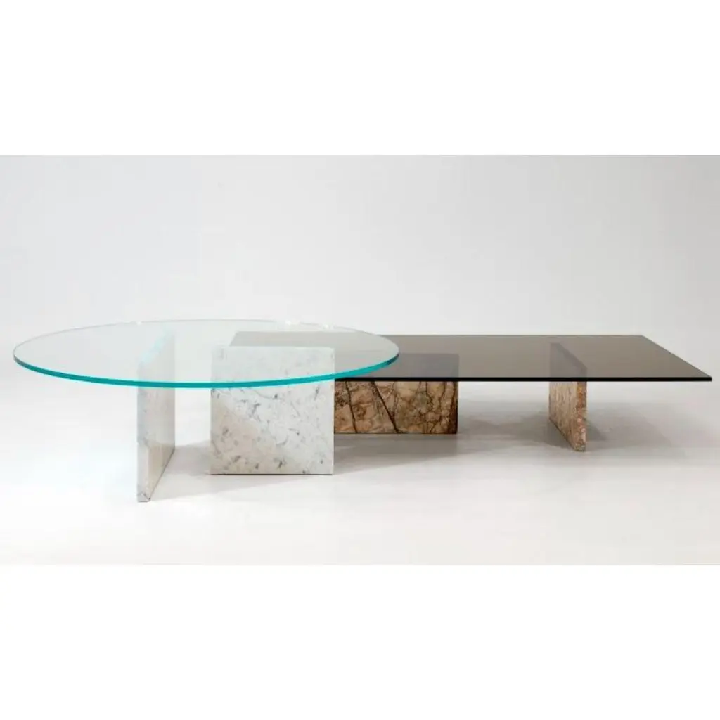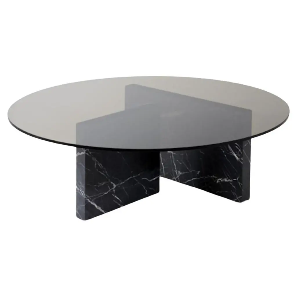 Set of 2 Remember Me Round Coffee Table by ClasteDimensions: D 76.2 x W 137.2 x H 35.5 cmMaterial: Carrara Gioia, Belvedere black, Mont Blanc, Manhatten Calacatta, Fusion marble, temptation Marble, blue Mare Weight: 119 kgSince 2017 Quinlan Osborne has cultivated an aesthetic in his work that is rooted in the passion for contemporary design he developed while practicing as an Architect for fi fteen years prior to shifting his attention to the world of collectible design and furniture. Representative of a new form of minimalism his studio produces a refi ned, sensual series of works which provide subtle moments of refl ection, devoid of distraction yet monumental and bold. The sculptural nature of his work explores new ways and means of infusing traditional materials such as marble and glass with notions of fragility and tension that elicit a deeper more emotional connection resulting in pieces that appear impossibly stable yet permanently grounded. Through ingenuity and artistry his work fuses an in-depth knowledge of tradition- al techniques of craftsmanship and artisanry with a desire to push the boundaries of what is possible with modern technology and fabrication processes, blending the familiar with the extraordinary and inviting people to re-examine their expectations of what furniture should be and how it is traditionally used.His work has been recognized with numerous high-profi le international design awards, including the Archiproducts Design Award, the Good Design Award from the Chicago Athenaeum: Museum of Art and Design and the Grands Prix du Design for Quebec. He has also been featured in several signifi cant design and lifestyle publications around the world including Elle Décor, T Magazine, Architectural Digest, Wallpaper, Surface Magazine and many others.