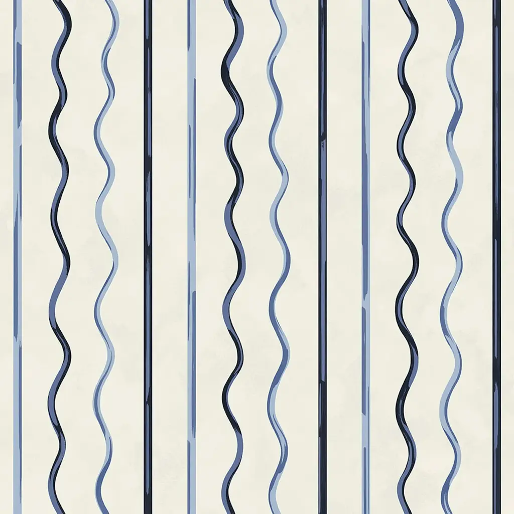 Shades, Damask Geometric Graphic White, Blue Wallpaper Roll