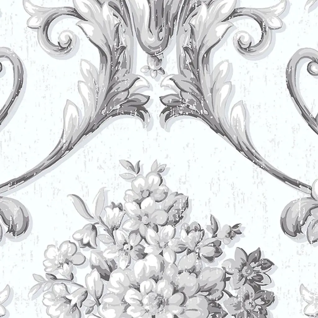 Shades, Damask Geometric Graphic White, Gray Wallpaper Roll