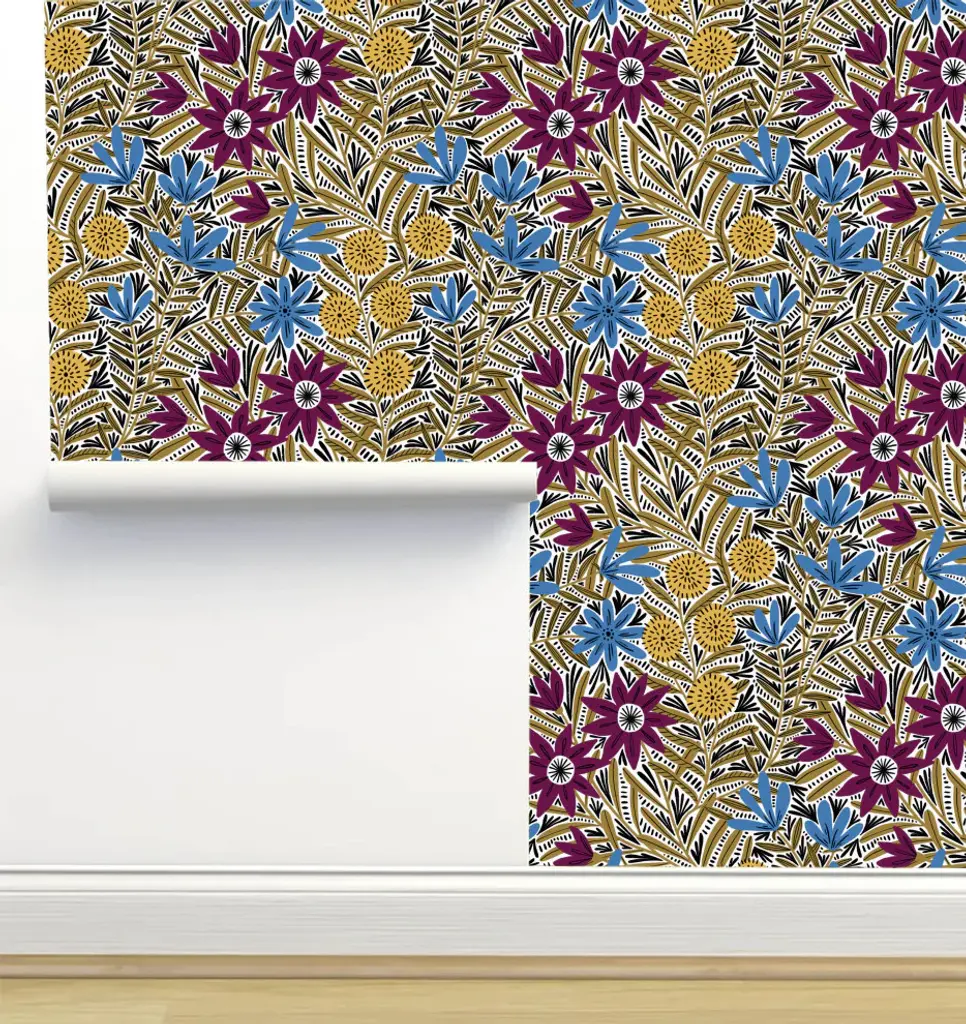 Each roll of wallpaper is custom printed to order and has a fixed width that covers 24 inches of wall space. Peel & Stick Fabric Wallpaper - Removable and Repositionable! Limitless Walls Fabric Peel and Stick wallpaper is a woven polyester fabric with an adhesive backing. Limitless Walls fabric is not like everyone else"™s, ours is the thickest most durable and easiest to install. You won"™t be able to find this anywhere else since we make it ourselves!• 100% opaque white polyester woven with adhesive backing• Eco-friendly and formaldehyde-, phthalate-, and PVC-free• To install, simply peel and stick• Easily removable and repositionable IMPORTANT NOTE Our wallpapers are not recommended for application over paints advertised as being stain-resistant or washable. These paints are crafted to prevent things from sticking -- including wallpaper. If in doubt, you can use Zinsser Gardz which is a clear primer that you can apply right over your current paint. If your wall has been recently painted, allow at least 2+ weeks for the paint to cure before applying wallpaper. Applying wallpaper over uncured paint can lead to bubbling. Our wallpaper will not stick to cement or textured walls.We highly recommend ordering a test swatch before committing to full rolls. While we have done our best to accurately represent the color and scale of this design, computer monitors aren''t the best way to determine how a printed color will look in person. It''s possible that the finished product may be slightly different than it appears in the preview. It is also important to test the adhesive on your unique surface.CARE INSTRUCTIONS:Gently wipe down with a damp cloth, soft cleaners such as dish soap can be used. The use of heavy cleaners or heavy rubbing can cause color to lift.Original Design by Amy MacCready.