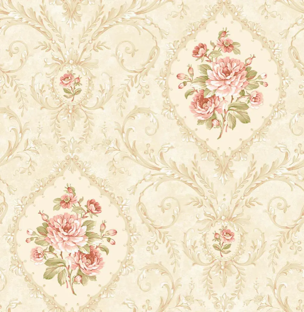 Silk Impressions 2, Contemporary Floral Beige, Rose Wallpaper Roll