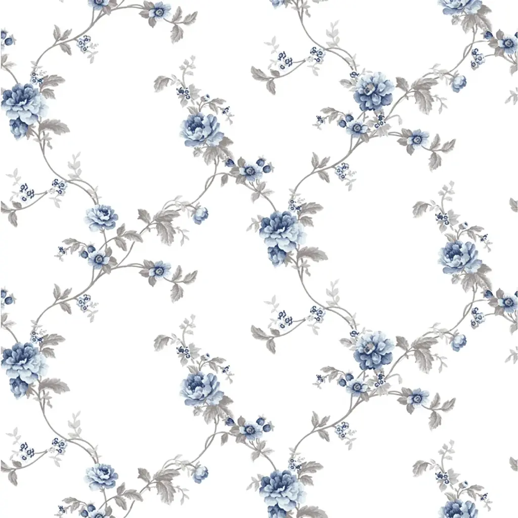 Silk Impressions 2, Contemporary Floral White, Light Blue Wallpaper Roll