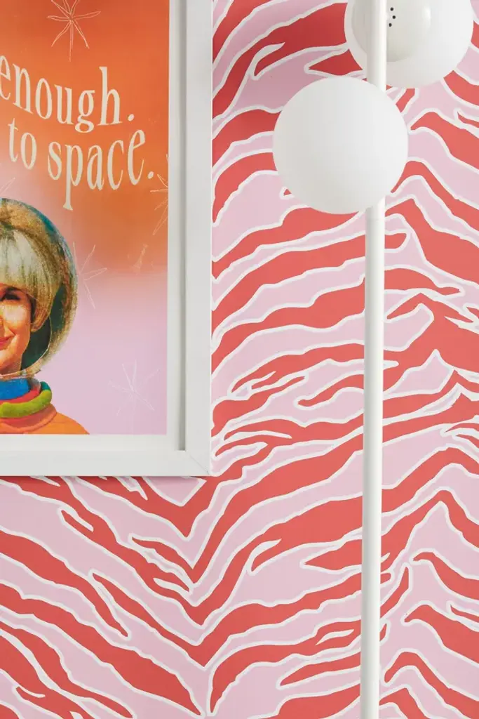 Easily removable stick-on wallpaper by SILVERPEGASUS with a vibrant tiger print. Cut in panels you can use to accent one wall or tile all over your room. Comes with one strip of wallpaper in an allover repeating pattern - choose from three different sizes to best suit your space. **Features** \- Peel and stick wallpaper panel by SILVERPEGASUS \- Finished with a tiger print in vibrant hues \- Easily removes from your walls **Content + Care** \- Includes one panel \- Paper \- Wipe clean \- Made in the USA **Size** \- Small dimensions: 48"l x 24"w \- Medium dimensions: 96"l x 24"w \- Large dimensions: 120"l x 24"w
