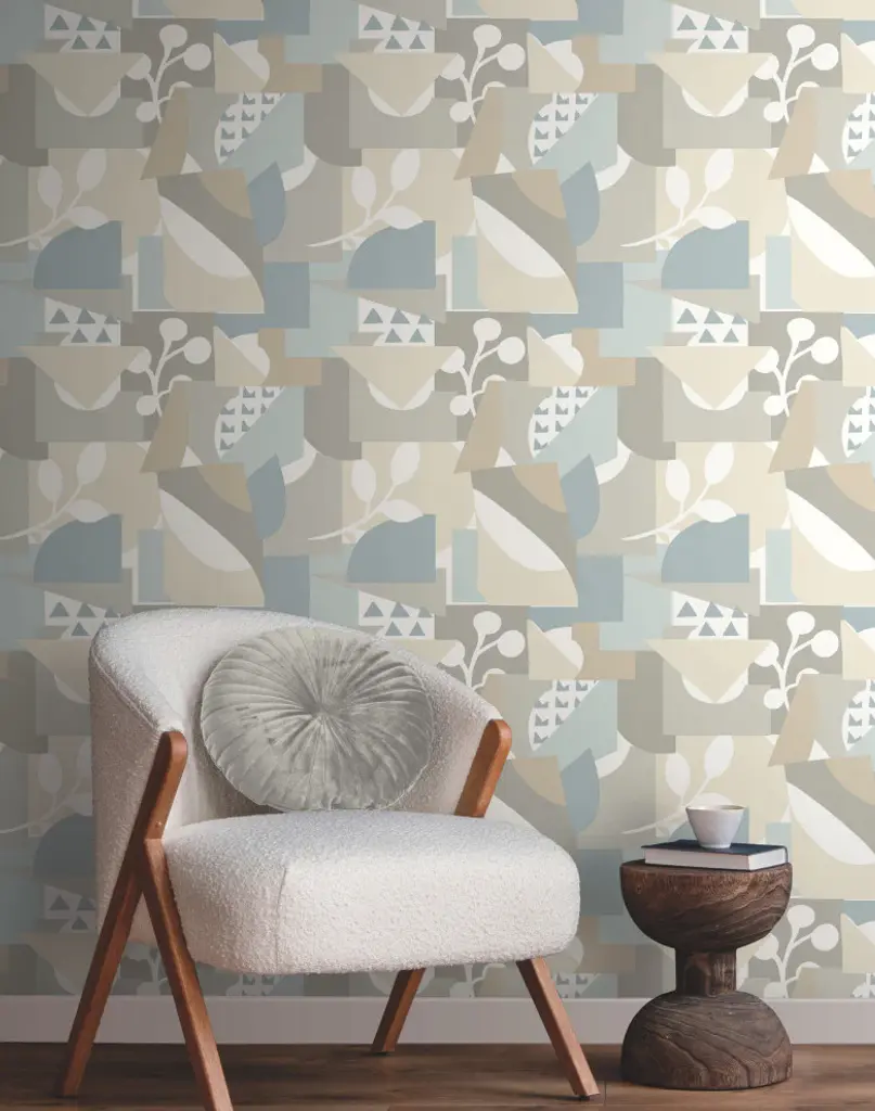 Expressionism finds the purity of simplicity in composition when fine art Cut Outs emerge as a new color block form of abstraction., shown in sky blue with neutral beige. This Cut Outs Wallpaper measures approximately 27 inches wide by 27 feet long, measuring approximately 60.8 square feet per roll. The modern aesthetic of natural form. Unpasted non woven material25.25-in repeat, straight matchWashable and strippable27-in by 27-ft long rollCovers about 60.8 square feet
