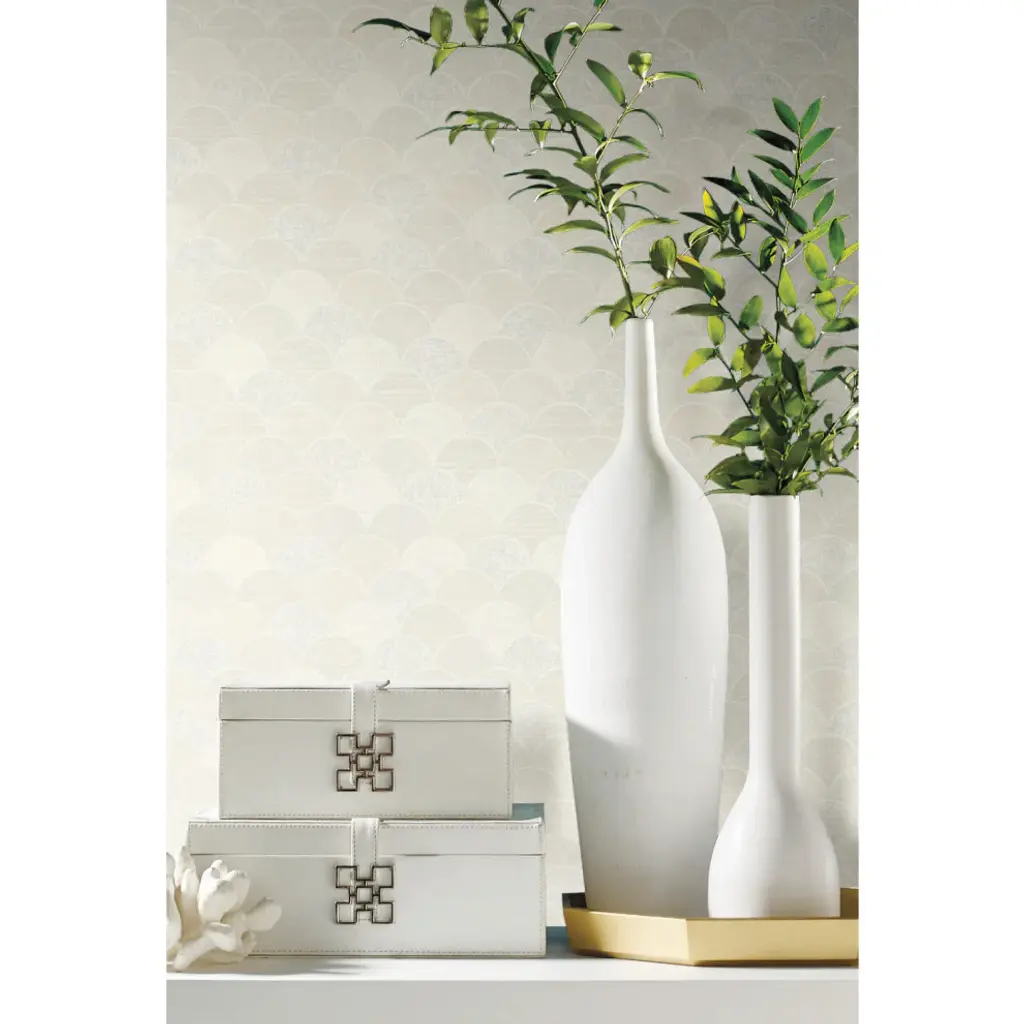Mythical beauty, Antonina Vella''s Mermaid Scales Wallpaper is designed with overlapping circles in varying hues to create a pleasing effect on the wall. This Mermaid Scales Wallpaper measures approximately 21 inches wide by 33 feet long, covering About 57.8 square feet per roll. Durable and easy to remove from primed walls, this friendly to hang unpasted nonwoven wallpaper is created with a special blend of synthetic fibers, making it both easy to hang and tear resistant. Unpasted vinyl material; 25.2-in repeat, straight match; Scrubbable and strippable; 21-in by 33-ft long roll; Covers about 57.8 square feet