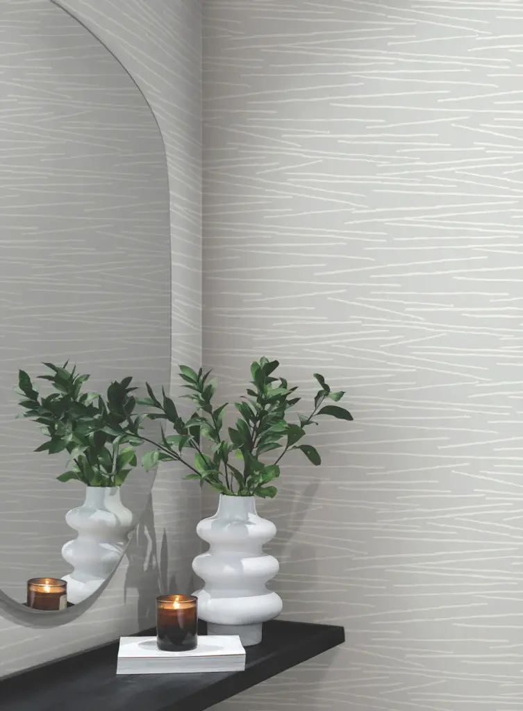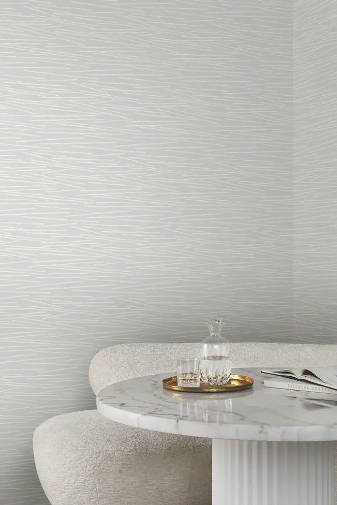 The horizontal, irregular motion of the pattern Line Horizon creates a minimalist field of undulating, pale blue and white waves. This Line Horizon Wallpaper measures approximately 27 inches wide by 27 feet long, measuring approximately 60.8 square feet per roll. Organic simplicity and lustrous adornment for the modern home. Unpasted non woven material25.25-in repeat, drop matchWashable and strippable27-in by 27-ft long rollCovers about 60.8 square feet