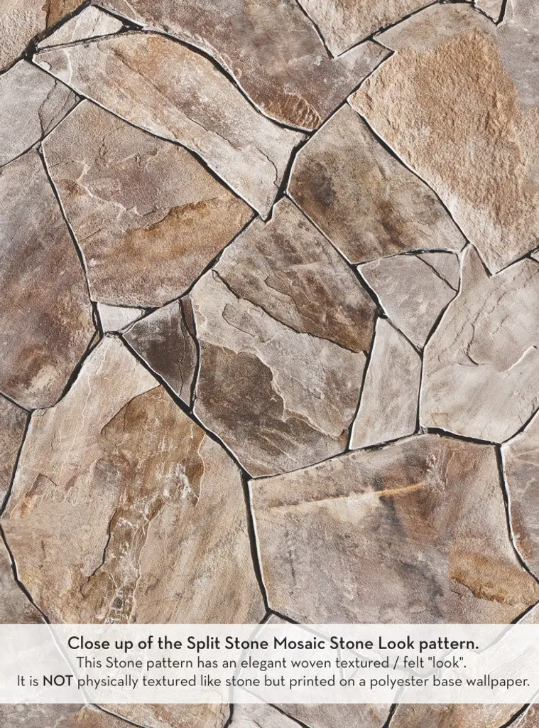 Turn your wall into a classic mosaic with our new Split Stone Mosaic Stone Look Peel and Stick Vinyl Wallpaper ! This textured looking design is a perfect way to add an elegant touch of nature to any room in your home. Available in a light or dark color option so that you can easily accent with the decor in your home!Attention Please note this This Stone pattern has an elegant woven textured / felt "look". It is NOT physically textured like stone but printed on a polyester base wallpaper.Size:24"Wx60"H24"Wx108"HPattern Repeat Length:Every 24"What''s Included:1 sheet of peel-n-stick vinyl wallpaper