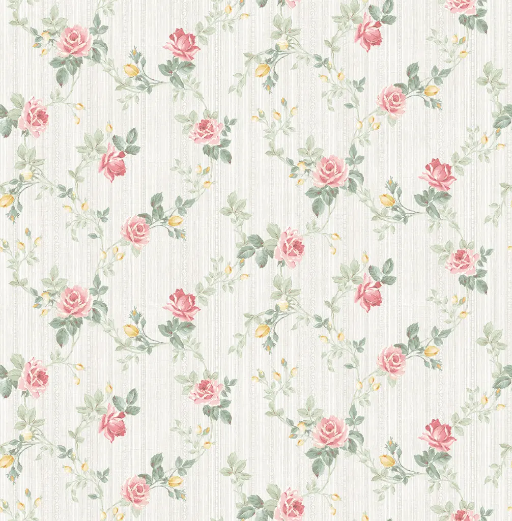Classic feminine rose trail wallcovering with delicate stripe background. Perfect for a Traditional and Feminine setting found in a Dining Room, Sitting Room, Hallway, or paired with wainscoting. Iridescent and Raised Ink details adding shine and texture to paper. From the Spring Garden Collection: Fresh florals and soft colors come together to create a bright and clean look that emphasizes a new contemporary cottage style. Offering a variety of large distinct florals, small print coordinates, floral trails, classic stripes, and cameos give this collection a unique style to brighten any interior. With colors ranging from soft neutrals to pleasing pastels, the designs and color palette harmonize together to create a look of modern sophistication unlike and other floral collection on the market. Pair this collection's stunning wallpapers with light transitional furniture and plenty of floral arrangements. **Second image is a style shot in a different colorway** Material: Heavyweight Paper Features: Unpasted - Washable - Wet Removable Match Type: Straight Pattern Repeat: 10.4" Roll Dimensions: Sold as in a minimum of 2 single rolls, which are physically packaged and delivered as 1 double roll covering approximately 56 square feet (20.5 inches wide x 33 feet long) of wall area. Please note: Burke Decor does not accept wallpaper returns at this time. Why? Wallpaper is produced in batches (similar to tile) and due to dye-lot variations that occur based on when the rolls are produced, we are unable to accept returns. We accept and offer free shipping on all wallpaper exchanges for all wallpaper that has remained unopened.