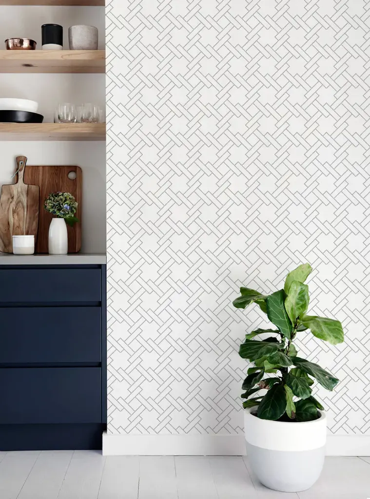 Our clean-lined Square Links wallpaper print is simply sophisticated. Use it to add Scandinavian flair to any room in your home!This re-positionable wallpaper is designed and made in our studios in New Jersey. The designs are printed onto an adhesive-backed fabric that can be removed, repositioned, and reused. The wallpaper does not leave residue on your walls and is ideal for DIY room makeovers without the mess and headaches of traditional wallpaper.Size:24"w x 108"hPattern Repeat Length:every 6" What''s Included:1 sheet of peel-n-stick fabric wallpaper