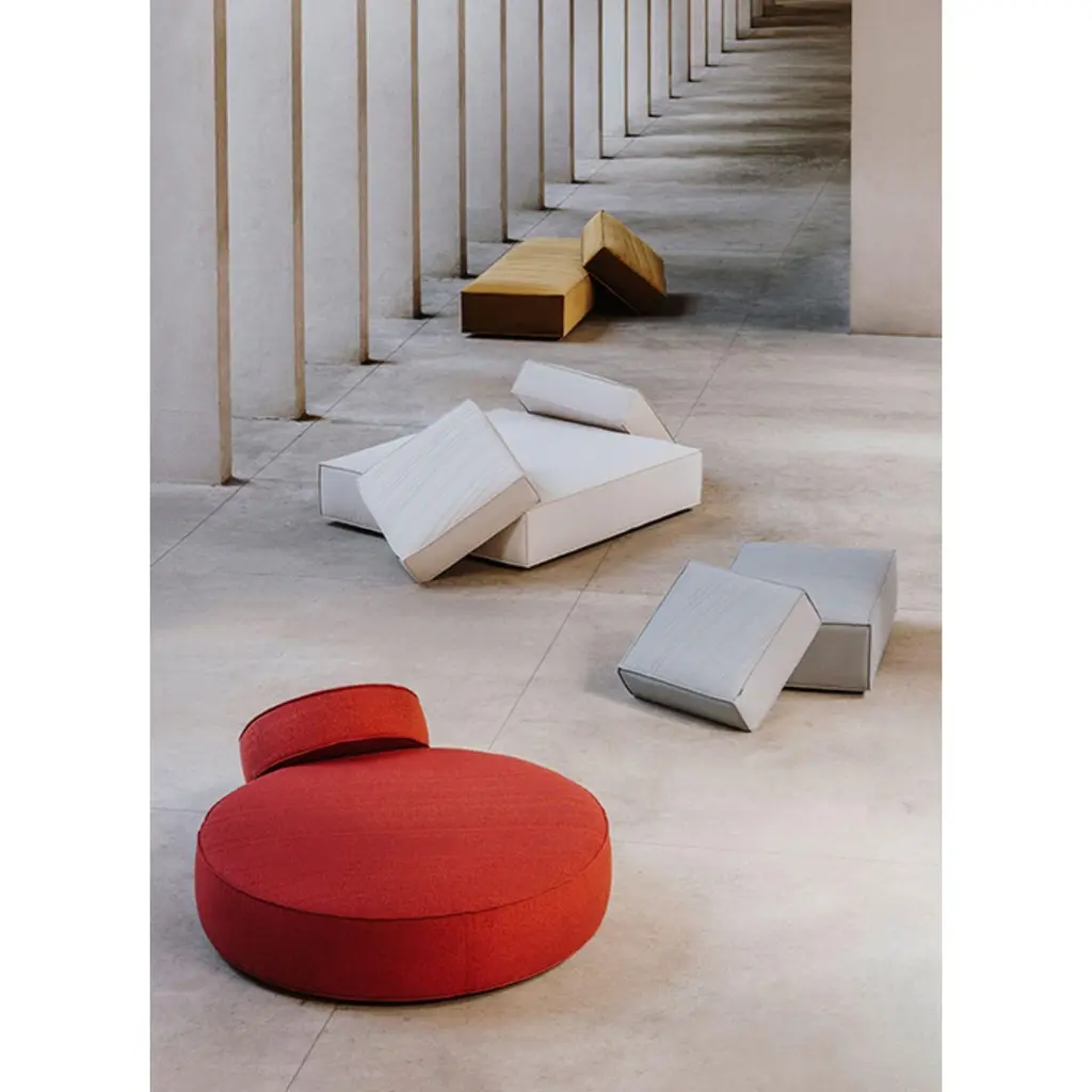 Stack pouf by NendoPouf with cushionMaterials: Upholstery: Fabric Structure: Black lacquered MDFDimensions: W 200 x D 130 x H 65 cm HS 42 cmAlso available in leather.Customization are available.Stack is a cushion casually tossed on top of another cushion. The sofa is merely a magnification of this all-too-common scenery. In order to convert the soft features of a cushion, an object with a frameless structure, into a structured piece of furniture, hidden elements were added to join the stacked elements together, securing them in such away as to remain invisible.Though the placement of the cushions might appear random, it actually took careful consideration and numerous prototypes to determine the best configuration. The production was conducted with extra effort and care in order to lend the design an effortless and care-free look.Oki Sato was born in 1977 in Toronto, Canada.Received M.Arch. from Waseda University, Tokyo in 2002. Established design studio “Nendo” inthe same year. Activity in the design world has not been limited to any one area but is rather multifarious, spanning from graphic and product design to designing furniture, installations, windows, and interiors, and even reaches into the realm of architecture.Chosen by Newsweek magazine as one of “The 100 Most Respected Japanese” and won many “Designer of the Year” of major awards include from Wallpaper magazine and ELLE Decoration magazine. Nendo designs can be found in the Museum of Modern Art in New York, as well as Musee des Arts décoratifs and Centre Pompidou in Paris. Among his many collaborations: Cappellini, Moroso, DePadova, Puma and Flos.