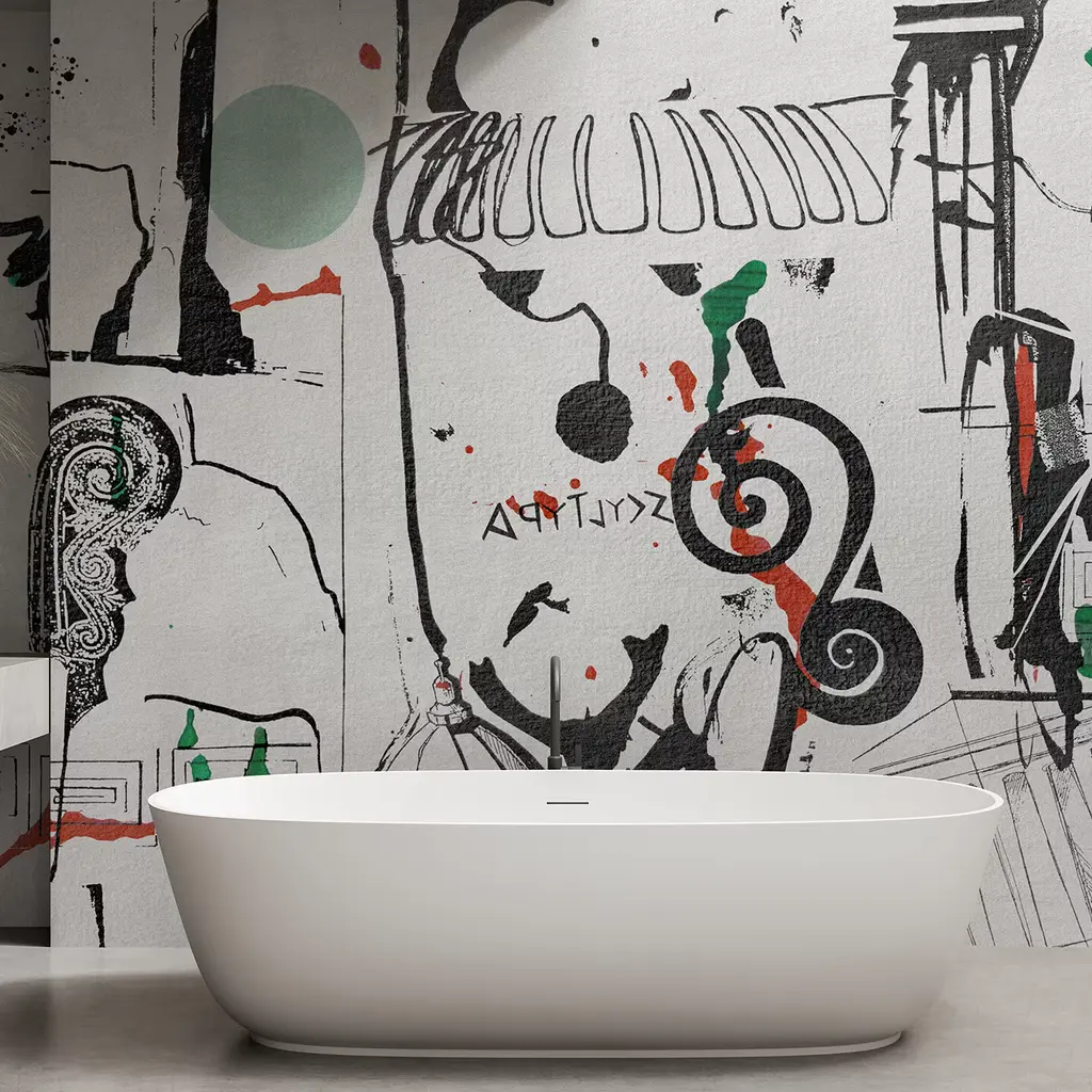 All Affreschi & Affreschi designs are reproduced on fresh plaster sheets. It is, therefore, a special wallpaper, covered with a layer of plaster obtained with a mixture of 27 precious raw materials. The output is a natural surface, to the touch and to the sight, that evokes that of the ancient frescoes made to measure and finished with care in every detail so that the chosen design emerges in all its beauty. Designed by Valentina Sironi. Price is per squared meter.