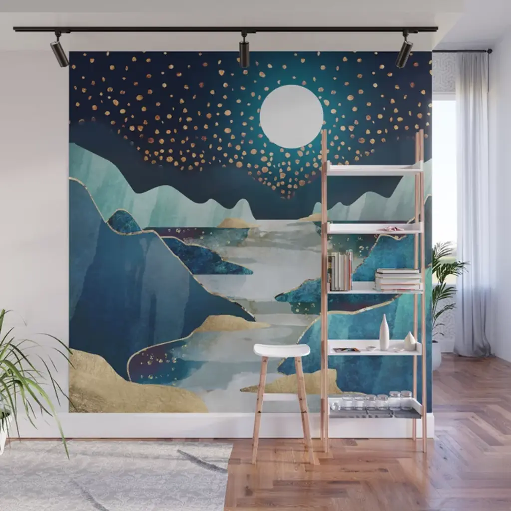 Each roll of wallpaper is custom printed to order and has a fixed width that covers 24 inches of wall space. Peel & Stick Fabric Wallpaper - Removable and Repositionable! Limitless Walls Fabric Peel and Stick wallpaper is a woven polyester fabric with an adhesive backing. Limitless Walls fabric is not like everyone else"™s, ours is the thickest most durable and easiest to install. You won"™t be able to find this anywhere else since we make it ourselves!• 100% opaque white polyester woven with adhesive backing• Eco-friendly and formaldehyde-, phthalate-, and PVC-free• To install, simply peel and stick• Easily removable and repositionable IMPORTANT NOTE Our wallpapers are not recommended for application over paints advertised as being stain-resistant or washable. These paints are crafted to prevent things from sticking -- including wallpaper. If in doubt, you can use Zinsser Gardz which is a clear primer that you can apply right over your current paint. If your wall has been recently painted, allow at least 2+ weeks for the paint to cure before applying wallpaper. Applying wallpaper over uncured paint can lead to bubbling. Our wallpaper will not stick to cement or textured walls.We highly recommend ordering a test swatch before committing to full rolls. While we have done our best to accurately represent the color and scale of this design, computer monitors aren''t the best way to determine how a printed color will look in person. It''s possible that the finished product may be slightly different than it appears in the preview. It is also important to test the adhesive on your unique surface.CARE INSTRUCTIONS:Gently wipe down with a damp cloth, soft cleaners such as dish soap can be used. The use of heavy cleaners or heavy rubbing can cause color to lift.Original Design by Crystal W Designs.