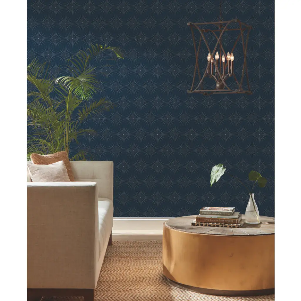 Metallic dots create a halo of warm shimmer in pattern Starlight''s stylized center star motif. This Starlight Wallpaper measures approximately 27 inches wide by 27 feet long, covering About 60.8 square feet per roll. Durable and easy to remove from primed walls, this friendly to hang unpasted nonwoven wallpaper is created with a special blend of synthetic fibers, making it both easy to hang and tear resistant. Unpasted non woven material; 25.25-in repeat, straight match; Washable and strippable; 27-in by 27-ft long roll; Covers about 60.8 square feet