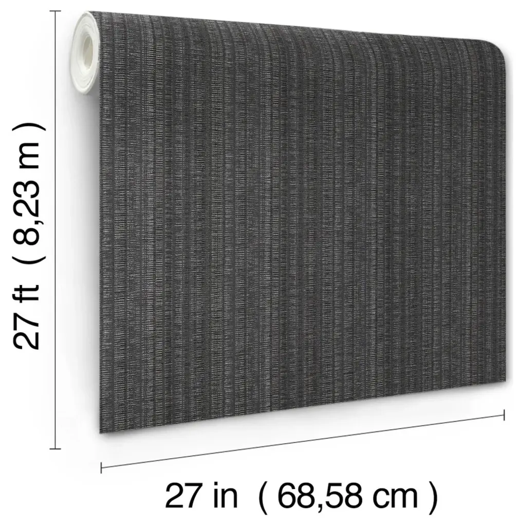 The vertical stripes of Stratford are created from dots and dashes kissed with hints of metallic against a ground of essential contemporary color, shown in carbon black with accents of silver and gold. This Stratford Wallpaper measures approximately 27 inches wide by 27 feet long, measuring approximately 60.8 square feet per roll. The glamour of metropolitan life inspires this sophisticated collection of classic, geometric, and textural High Performance Type II products styled for residential and boutique commercial spaces. Unpasted vinyl on non woven material; No repeat, random match; Scrubbable and strippable; 27-in by 27-ft long roll; Covers about 60.8 square feet