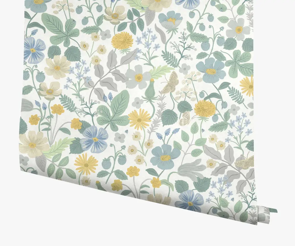 The bright blooms, trailing leaves, and sweet berries of Strawberry Fields create a pattern that will bring cheer to any space, and the occasional fluttering butterfly adds a whimsical accent. This wallpaper is gravure printed and comes in 27 inch rolls with a 24 inch repeat. Due to the printing process, there may be color variations in different print runs. We suggest purchasing all wallpaper needed for a project at one time for the best color consistency. Unopened rolls can be returned.