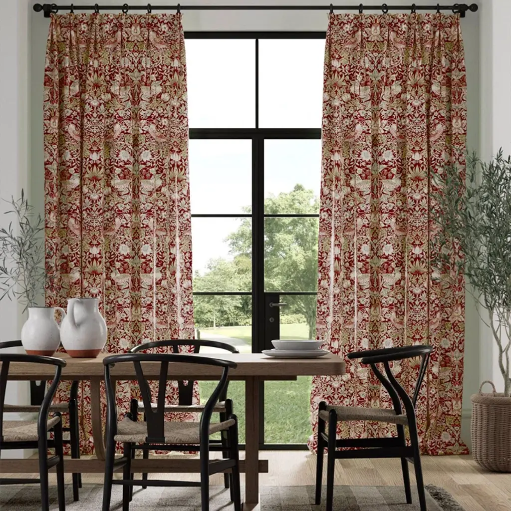 A cheeky bird pecks at delicious strawberries on this iconic morris and co. Faithfully reproduced on 100% cotton, subtle textures retain the look of the original hand-printed design. Suitable for elegantly flowing drapes, the strawberry thief is also available as wallpaper.
