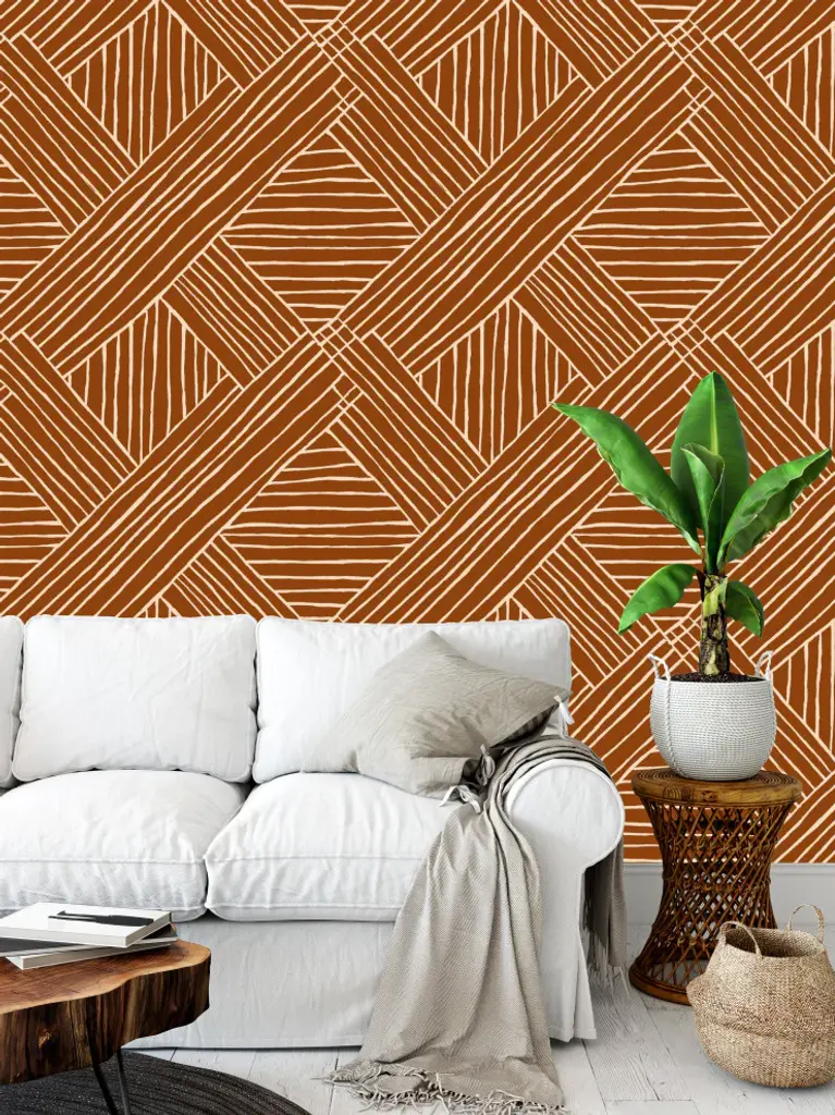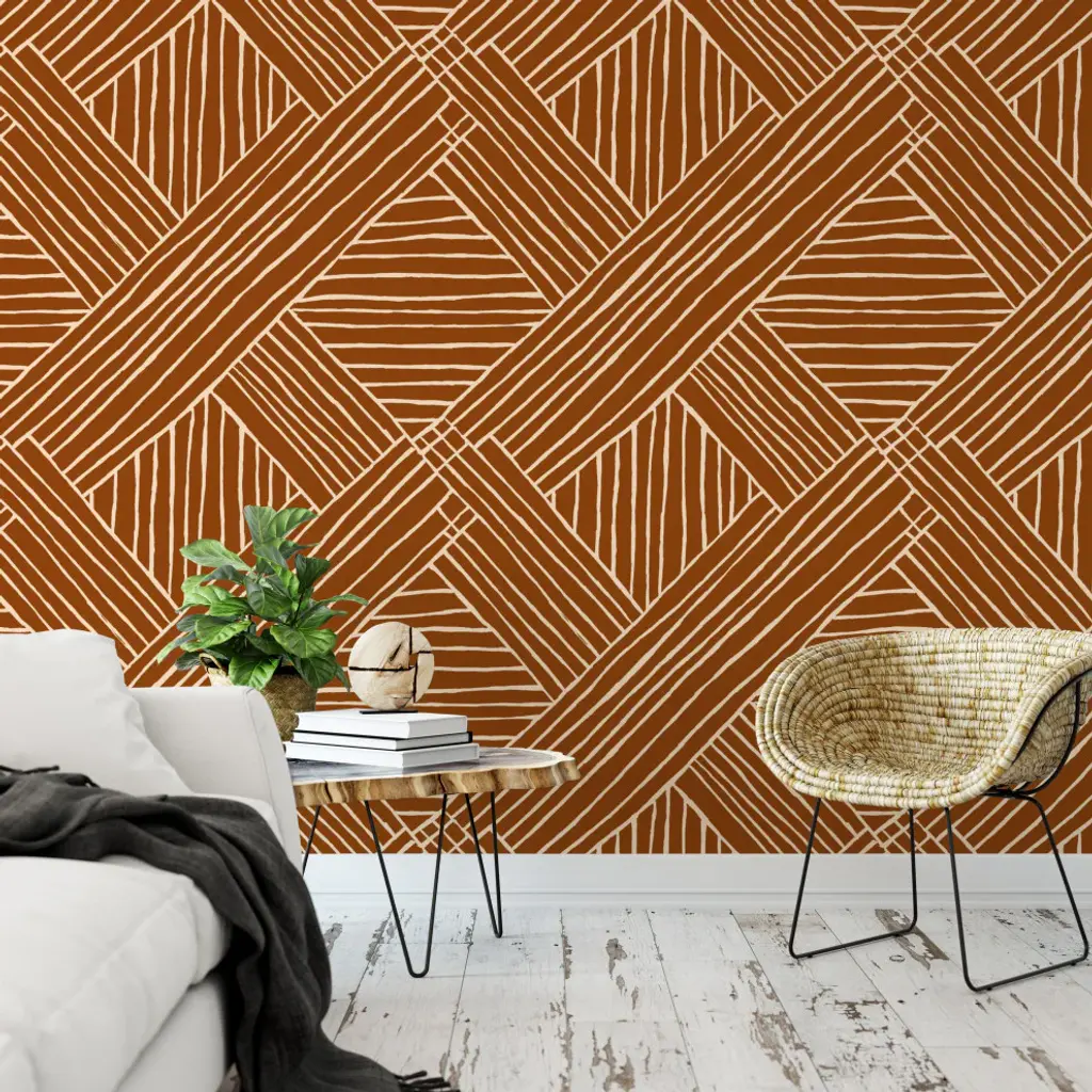 Striped Diamonds Copper Wallpaper, 24"x72"