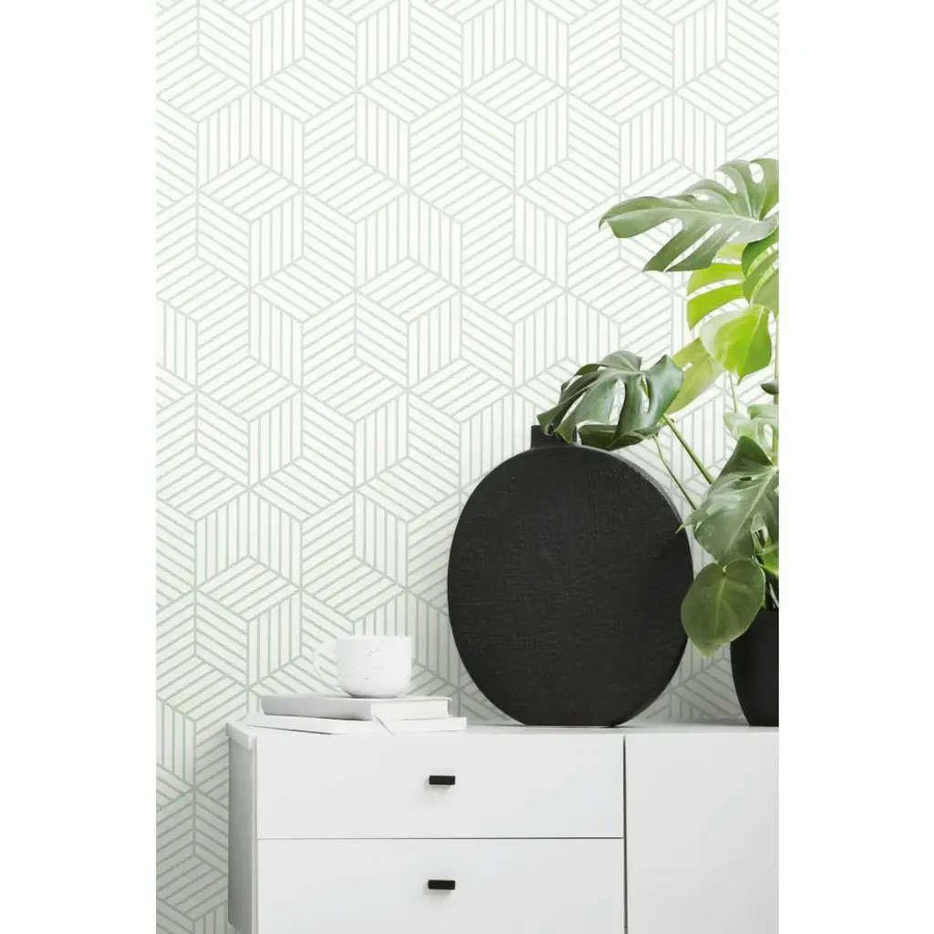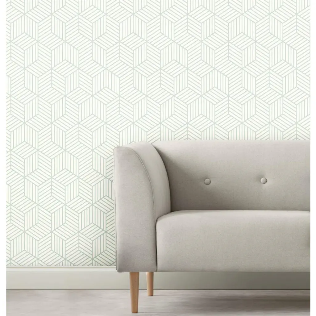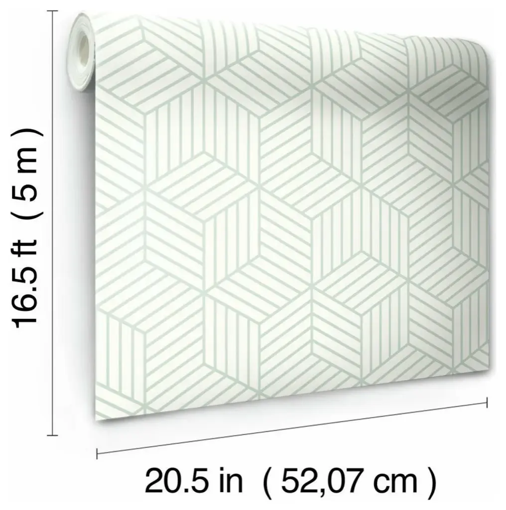 Give walls an edgy transformation with Green Striped Hexagon Peel & Stick Wallpaper by RoomMates. This bold geometric pattern creates a designer loft vibe with minimal effort. Modern and minimal, create a charming space in minutes with our peel and stick technology. Simply peel from the backing and stick to any smooth surface of your choice. From walls to furniture and more, create a come you''ll love with Peel and Stick Wallpaper from RoomMates. Includes 1 roll - 20.5 inches wide x 16.5 feet with a straight match and 10.25 inch repeat. Covers 28.18 square feet.