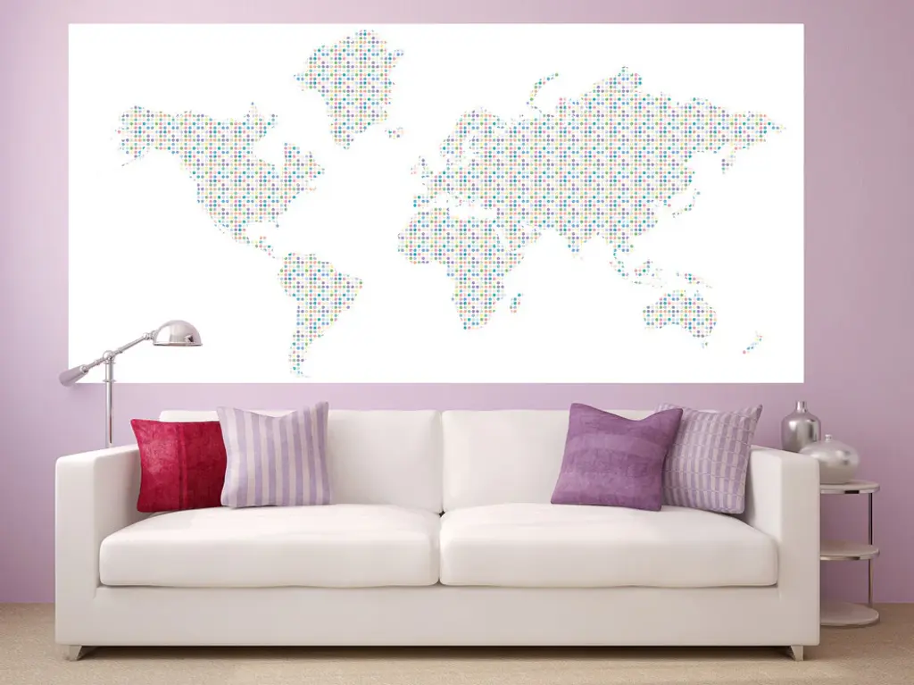 Studio Map Mural, Pastel Multicolored Dots, Wallpaper, 3 Panels, 107"x52"