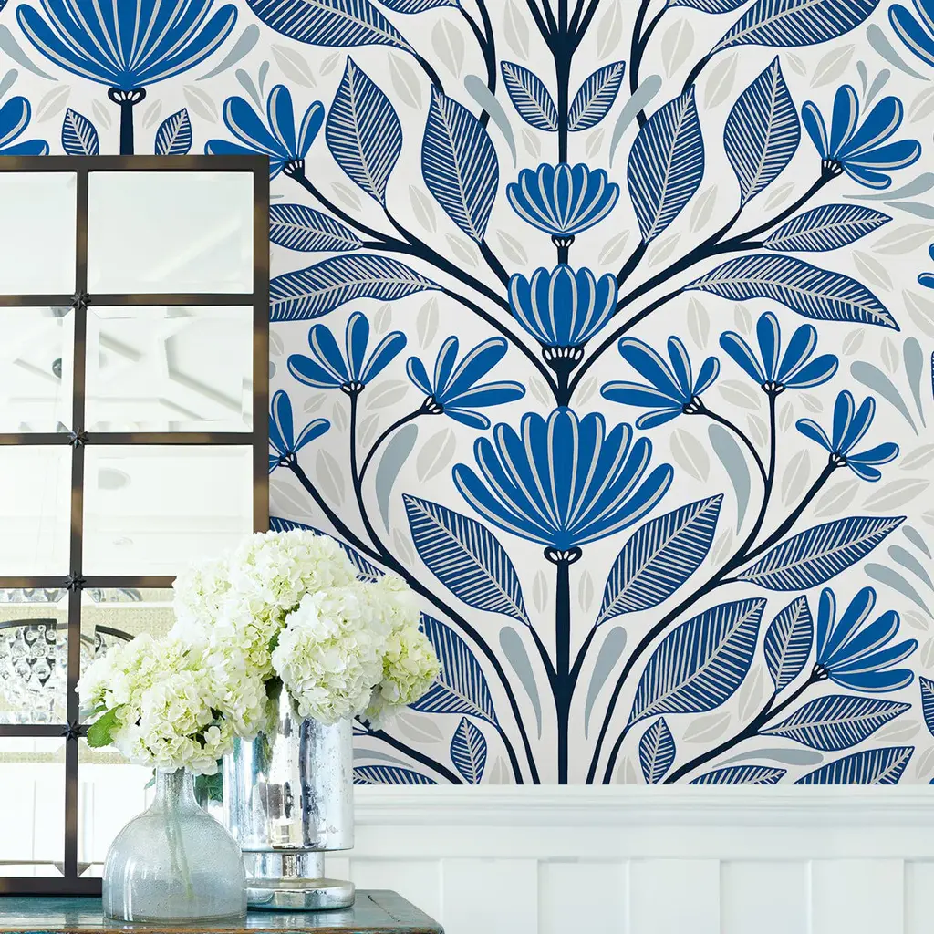 Adorn your home with a burst of nature and personality with the Summer House Carmela Folk Floral Wallpaper from Seabrook Designs. Vibrant florals, leaves, and shell designs showcase a washable non-woven paper with a matte finish for a smooth touch. Featuring a straight match, this 27' wide roll repeats every 25.2", bringing bold color to your living room or bedroom. Highlights