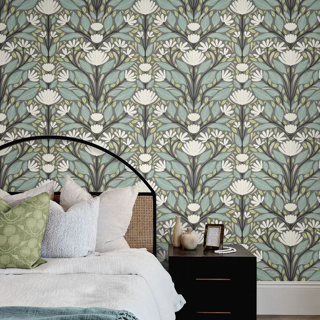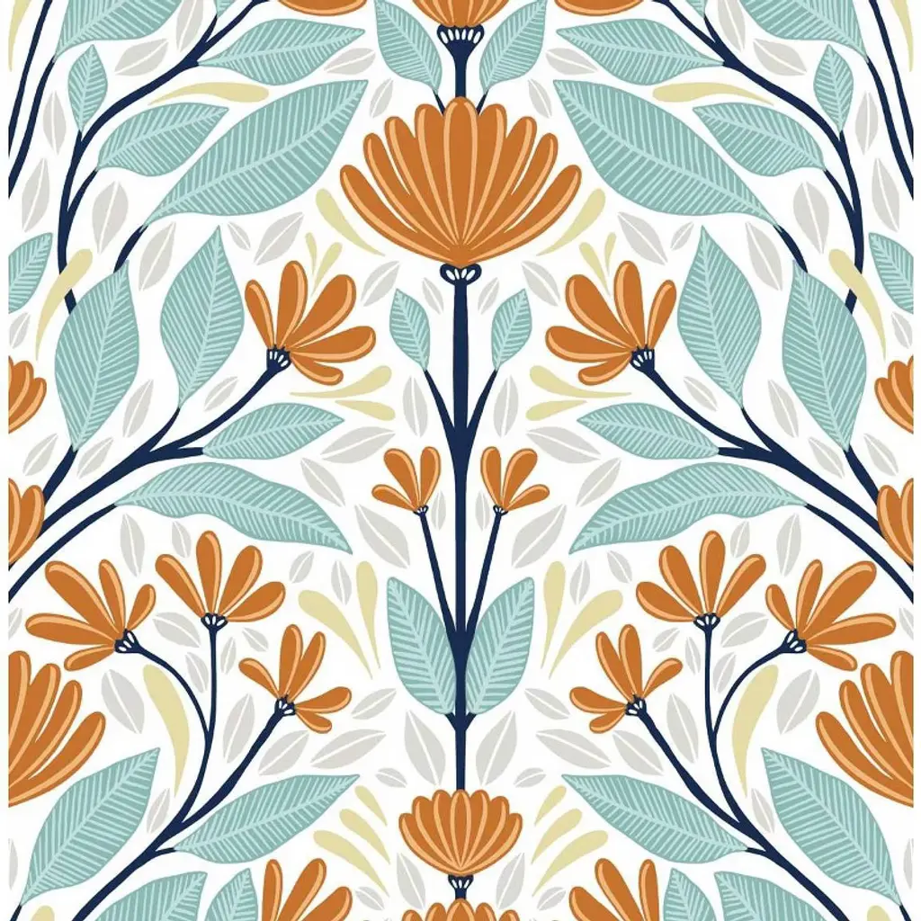 Adorn your home with a burst of nature and personality with the Summer House Carmela Folk Floral Wallpaper from Seabrook Designs. Vibrant florals, leaves, and shell designs showcase a washable non-woven paper with a matte finish for a smooth touch. Featuring a straight match, this 27' wide roll repeats every 25.2", bringing bold color to your living room or bedroom. Highlights