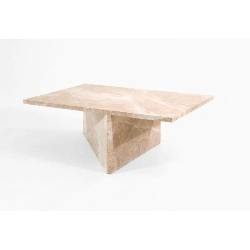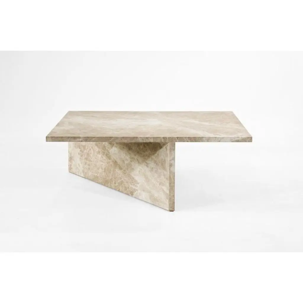 Surpriced by Joy coffee table by Claste Dimensions: D 137.2 x W 91.5 x H 38 cmMaterial: MarbleWeight: 330 kgAlso vailable in two standard sizes.This all marble table offsets a rectangular top over a triangular base creating a piece that is both simple and complex, one that shifts in appearance from delicate and light to solid and grounded. The weight of the base allows for an alternating single or double cantilever when viewed from opposite elevations. Available in various marbles there is also the opportunity to create them in custom sizing and pairs which can be nested if so desired.Since 2017 Quinlan Osborne has cultivated an aesthetic in his work that is rooted in the passion for contemporary design he developed while practicing as an Architect for fi fteen years prior to shifting his attention to the world of collectible design and furniture. Representative of a new form of minimalism his studio produces a refi ned, sensual series of works which provide subtle moments of refl ection, devoid of distraction yet monumental and bold. The sculptural nature of his work explores new ways and means of infusing traditional materials such as marble and glass with notions of fragility and tension that elicit a deeper more emotional connection resulting in pieces that appear impossibly stable yet permanently grounded. Through ingenuity and artistry his work fuses an in-depth knowledge of tradition- al techniques of craftsmanship and artisanry with a desire to push the boundaries of what is possible with modern technology and fabrication processes, blending the familiar with the extraordinary and inviting people to re-examine their expectations of what furniture should be and how it is traditionally used.His work has been recognized with numerous high-profi le international design awards, including the Archiproducts Design Award, the Good Design Award from the Chicago Athenaeum: Museum of Art and Design and the Grands Prix du Design for Quebec. He has also been featured in several signifi cant design and lifestyle publications around the world including Elle Décor, T Magazine, Architectural Digest, Wallpaper, Surface Magazine and many others.