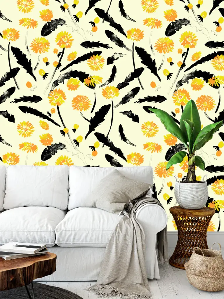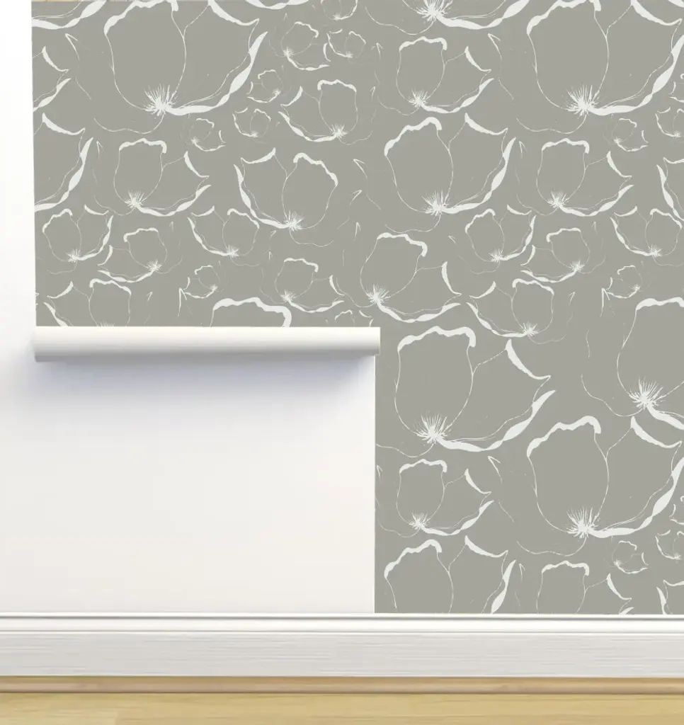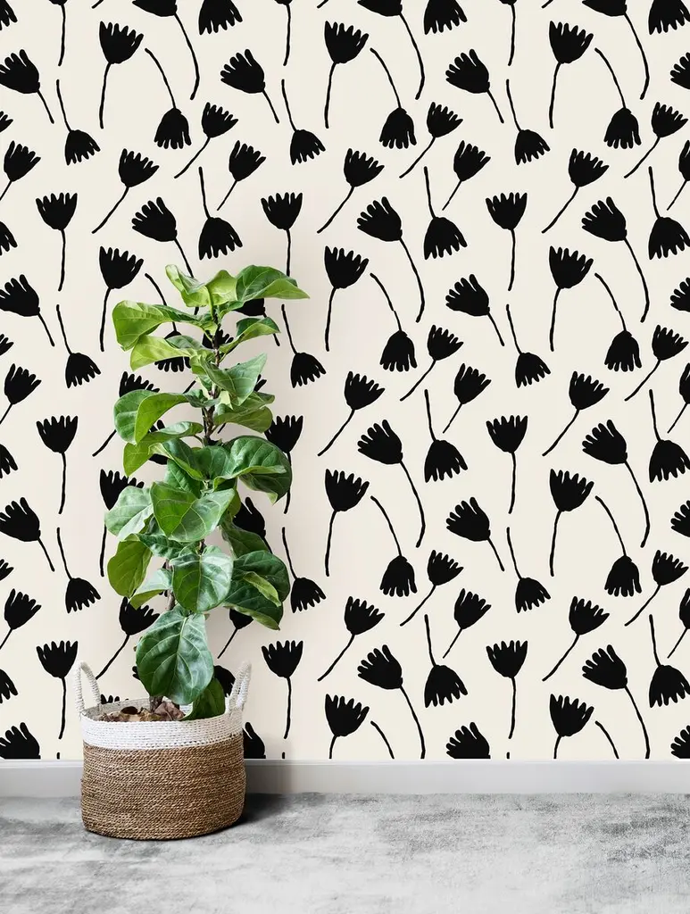 Susan Hable, Tossed Tulips Wallpaper, Black/beige