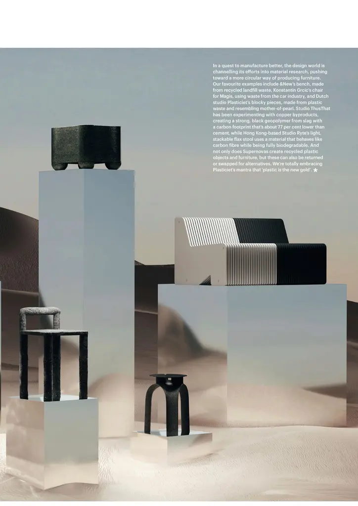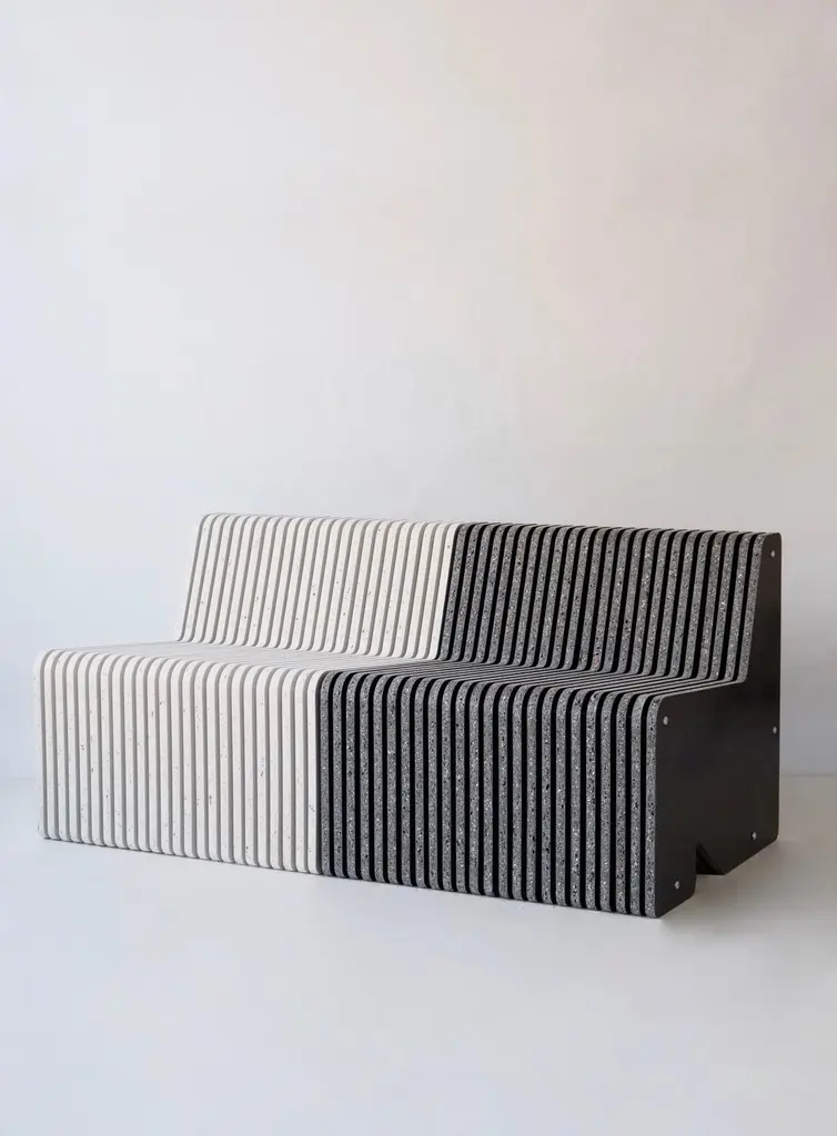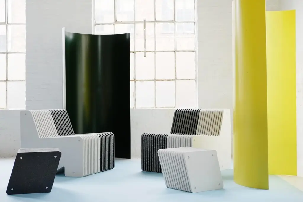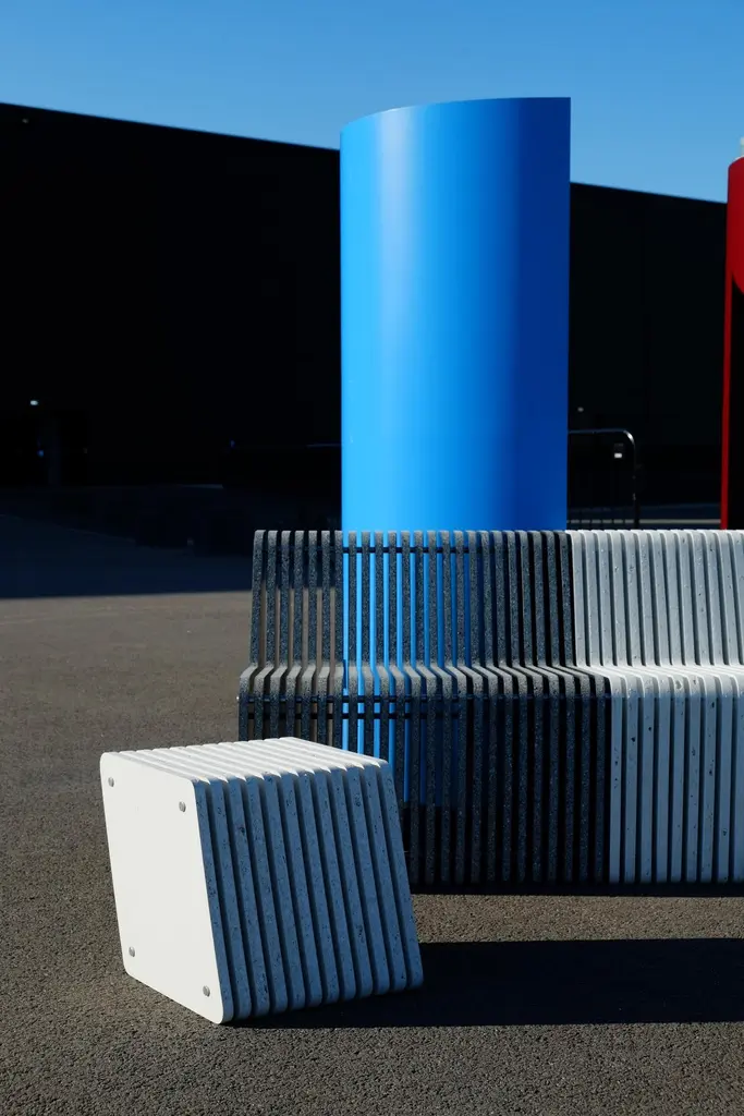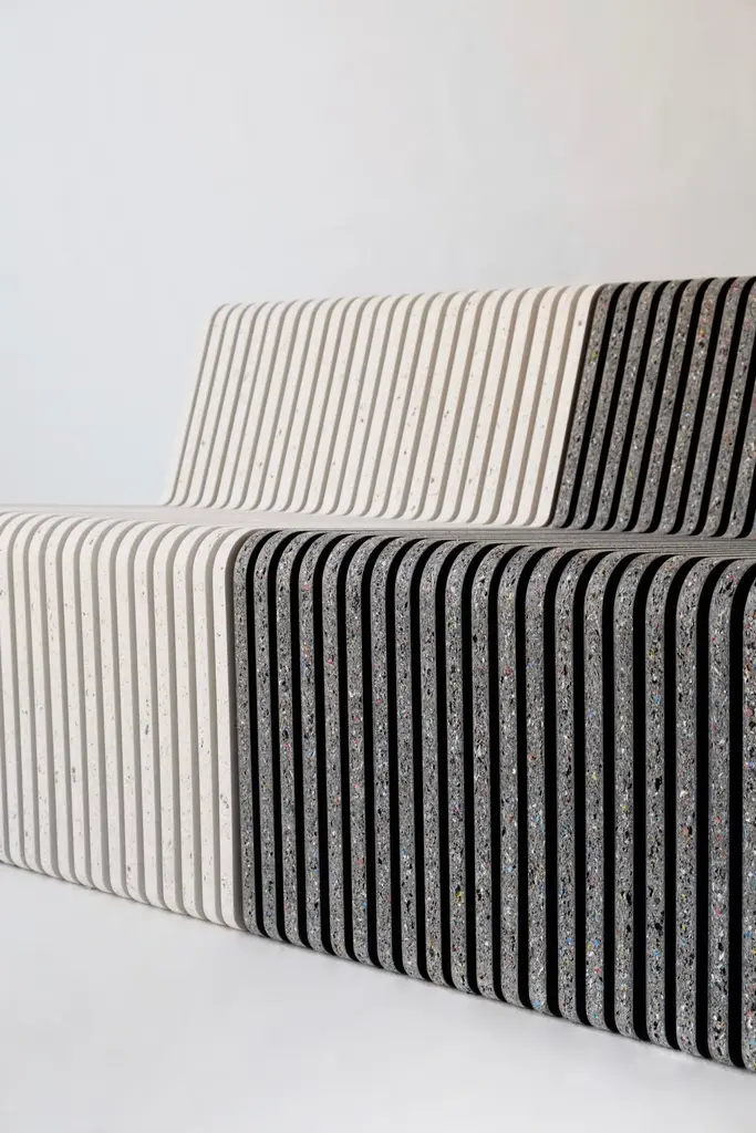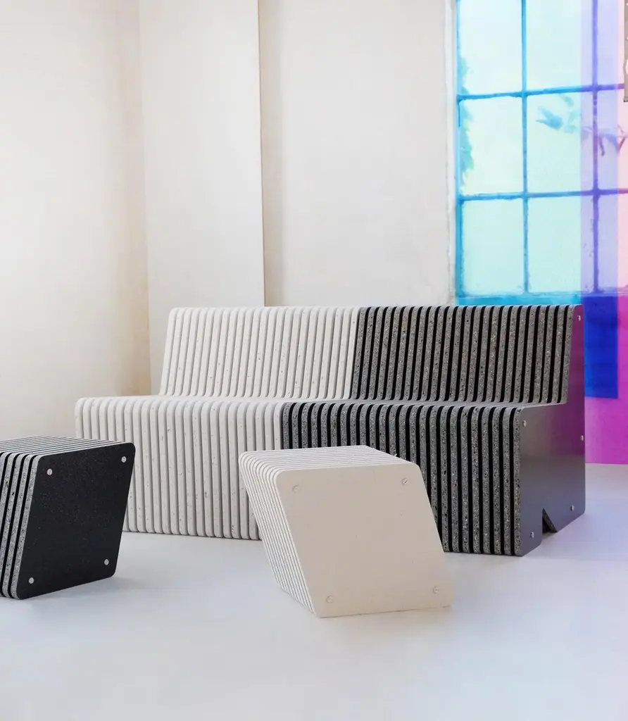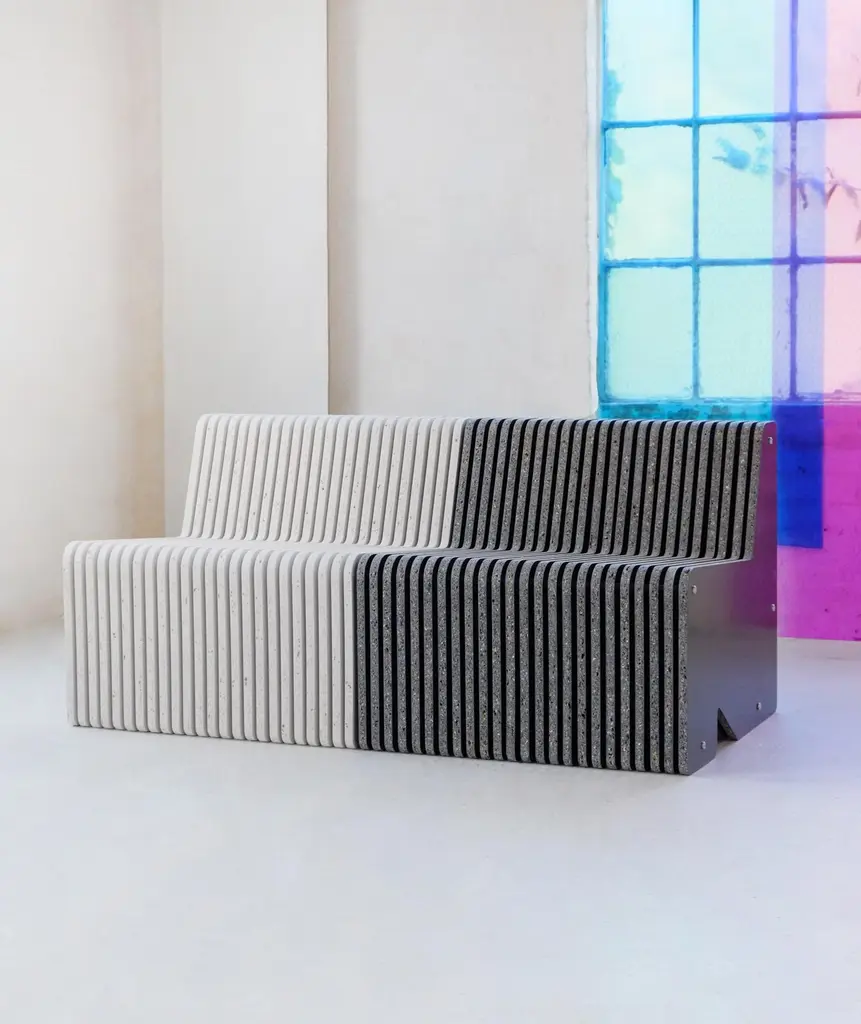 Wallpaper design awards winner 2021 - Best use of material. The Jää bench and coffee table set offers a large seating option for both indoor and outdoor use. The set is ideal for pool spaces and outdoor living, but would also be great in the public sector. The matching cubes are designed from the left over material from the bench, helping to eliminate any waste in the making process. This set consist of one Jää bench and two Jää cubesThe Finnish word jää has two meanings; ‘ice’ and ‘please stay’ - a perfect word for sustainable pieces of design. Our inspiration for the Jää furniture came initially from the beautiful and practical nature of the recycled plastic and its environmentally friendly credentials. Through the design and use of materials we wanted to show that recycled plastic furniture can be bold, desirable and aesthetically pleasing. The Jää furniture is made out of 100% recycled post consumer plastic - pure waste that has been diverted from the landfills. The furniture is made in Britain with a mixture of polyethylene (PE) and polypropylene (PP) plastic shapes with small aluminium spacers and nuts. Further, the Jää designs are also fully recyclable contributing to the circular economy. The Jää pieces are sculptural, multifunctional and adaptable designs suitable for both indoors and outdoors in public and private spaces. Handmade to order in UK. Bench sofa measures: 150 cm wide x 70 cm high x 80 cm deep.Each cube measures: 37 cm wide x 37 cm high x 37 cm deep.Each piece can be made to any width, please contact us for any bespoke requirements. Also shown in the images Jää cube.