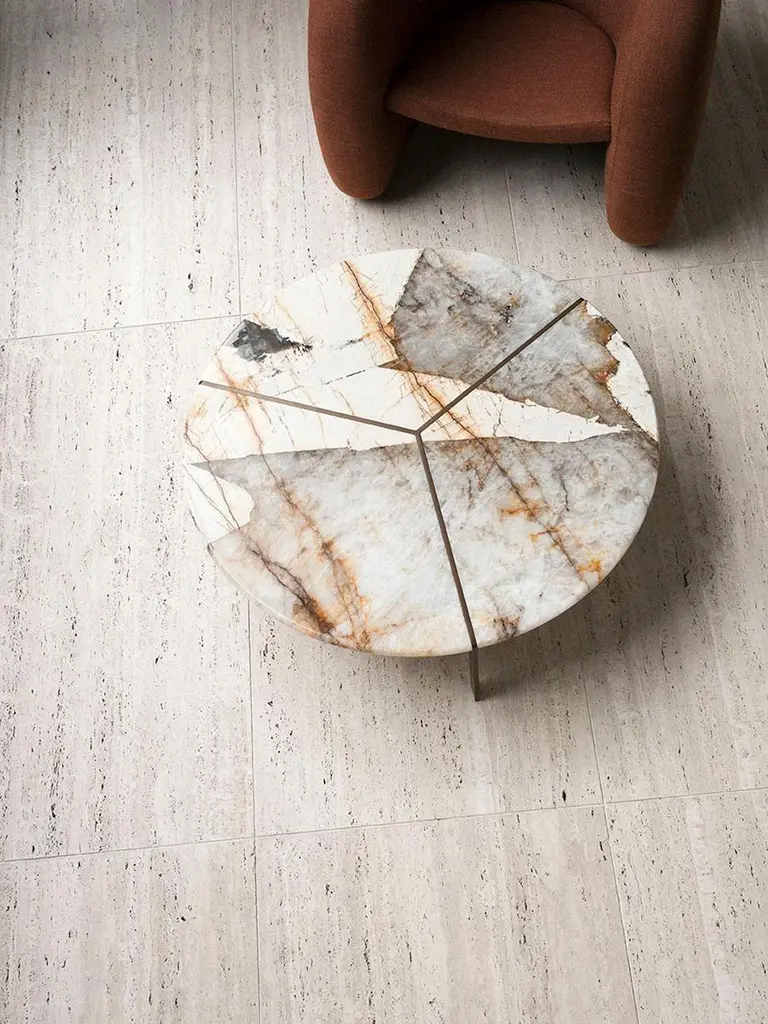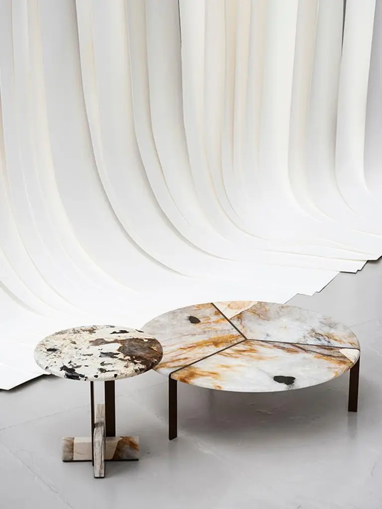 The softness of Brazilian furniture design between the 1940s and 1960s in the modernist architecture of Niemeyer, Costa, Vilanova Artigas and Bo Bardi provides the inspiration for the new collection of Joaquim tables by Bonaguro for Tacchini. In aesthetic terms, the linear, geometric shapes are a homage to the simple, elegant lines of Joaquim Tenreiro, considered one of the fathers of modern tropical design. In technical terms, the Joaquim collection was designed to salvage off-cuts, fully embracing the principles of upcycling and environmental sustainability, which are major linchpins of Brazilian creativity. The tables feature a metal frame with tops and bases in Patagonia or Elegant Brown.Awards: 2020 Wallpaper Design Awards: Best Flashback.