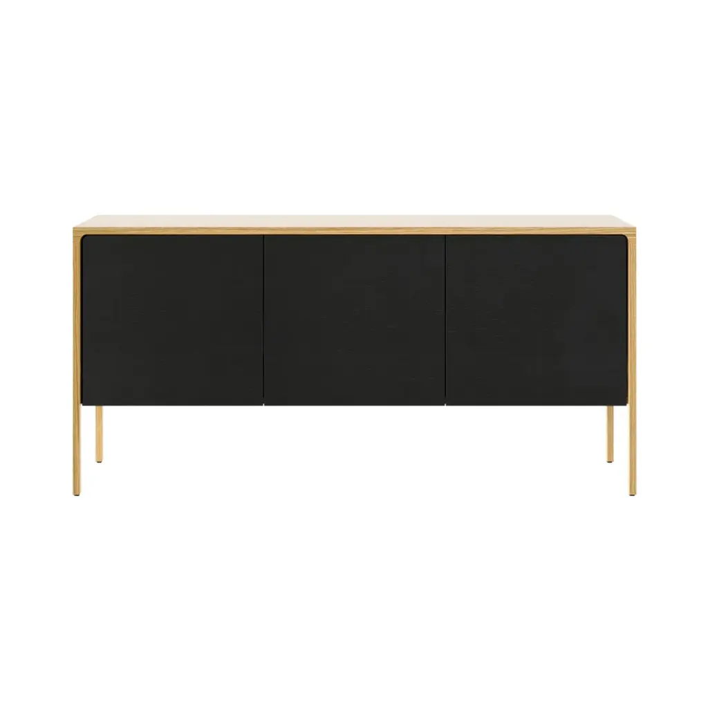 The Tactile Sideboard needs but a gentle touch to open the doors or drawers via push-latches. From Spanish maker Punt and noted British designer Terence Woodgate, the cabinetry has a seamless effect with no handles to clutter the view. A choice of wood veneers appears to curve around the recessed front in a contrasting glossy black or white finish. In a range of sizes, the Tactile Sideboard was recognized by Wallpaper magazine as a best in class design.